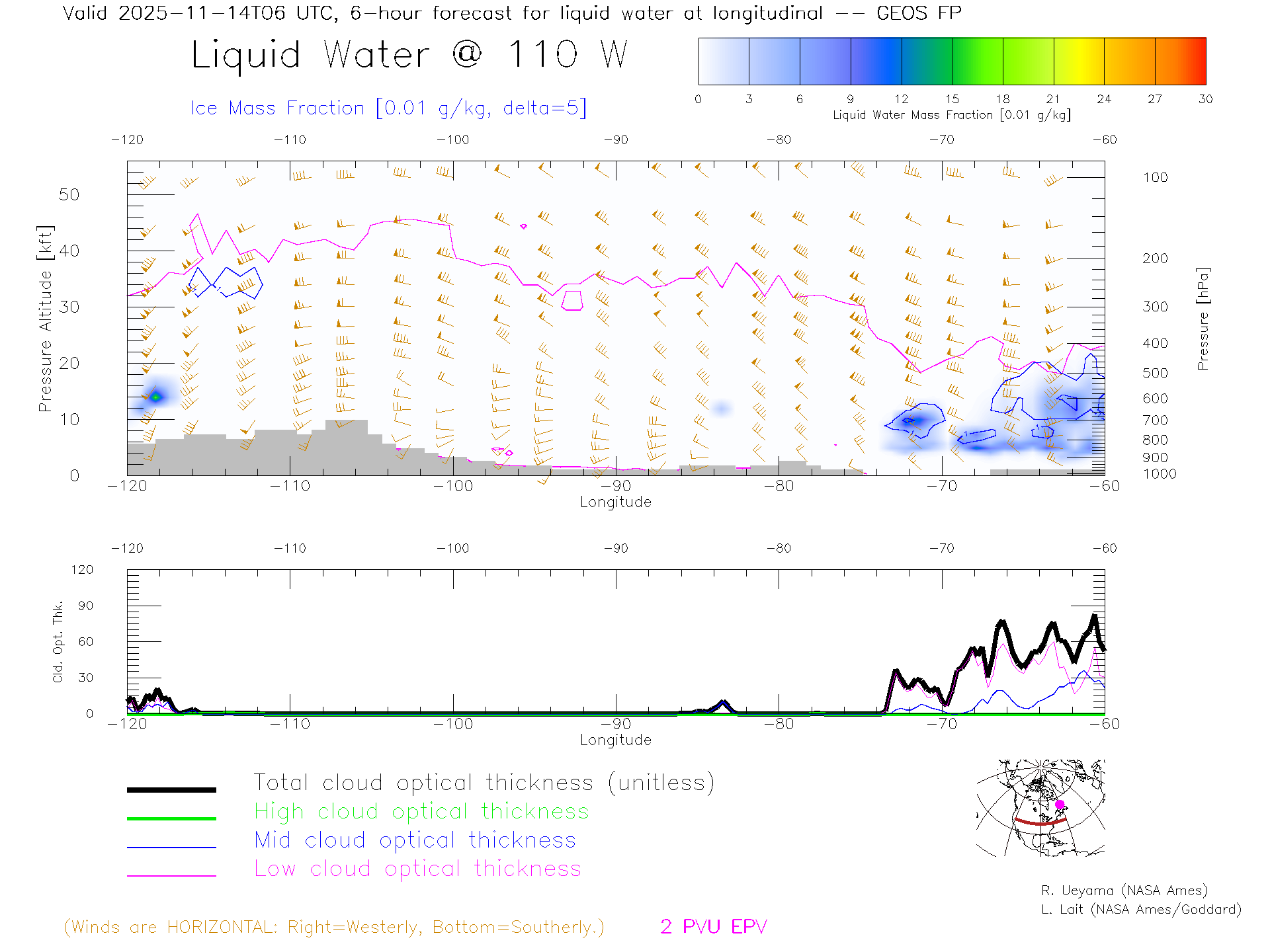 GEOS Forecast Cloud Water Content X-Section (40 N)