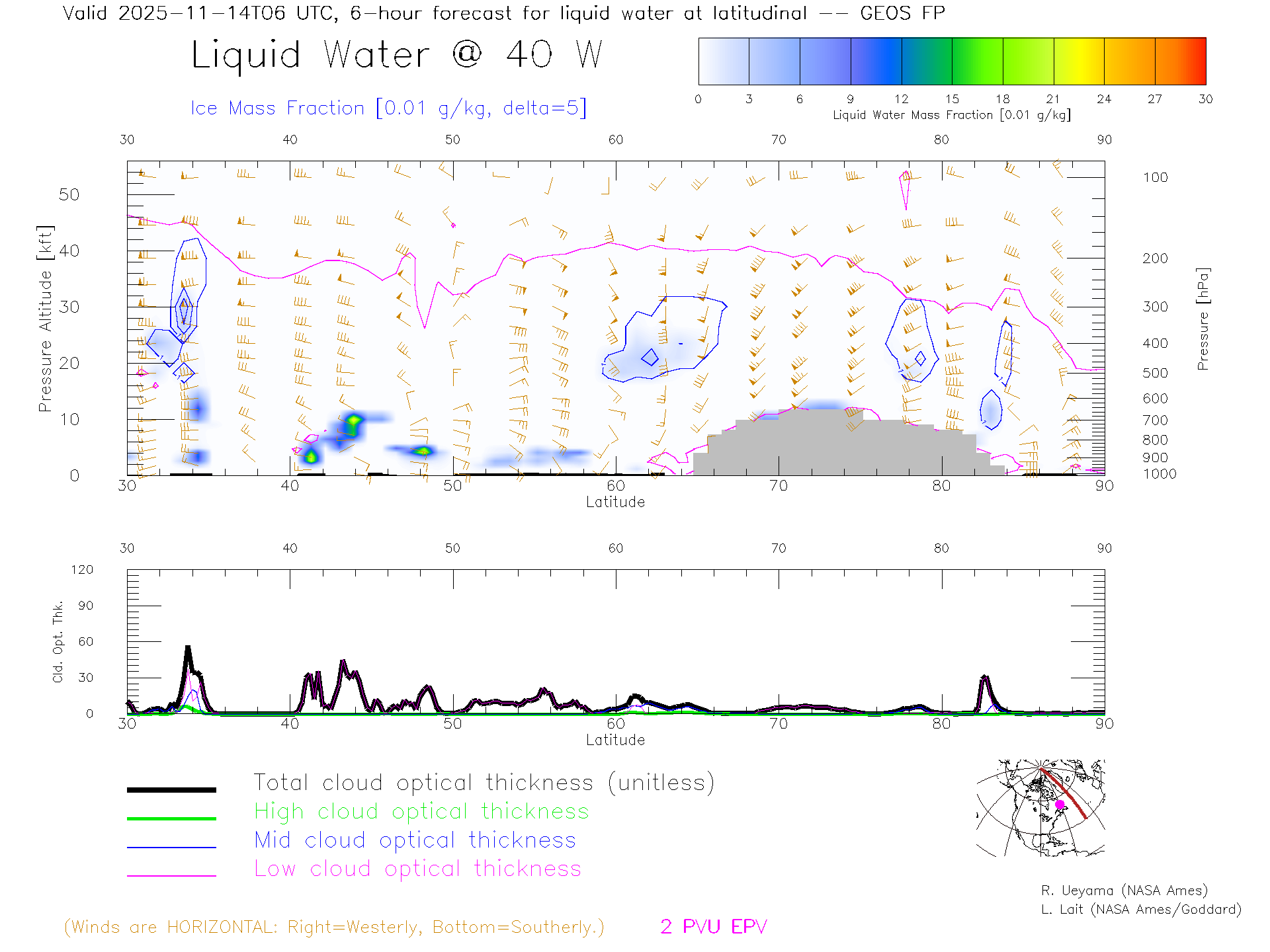 GEOS Forecast Cloud Water Content X-Section (40 W)