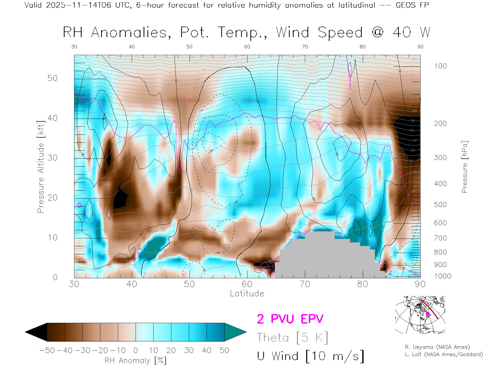 GEOS Forecast Rel. Hum. X-Section (40 W)