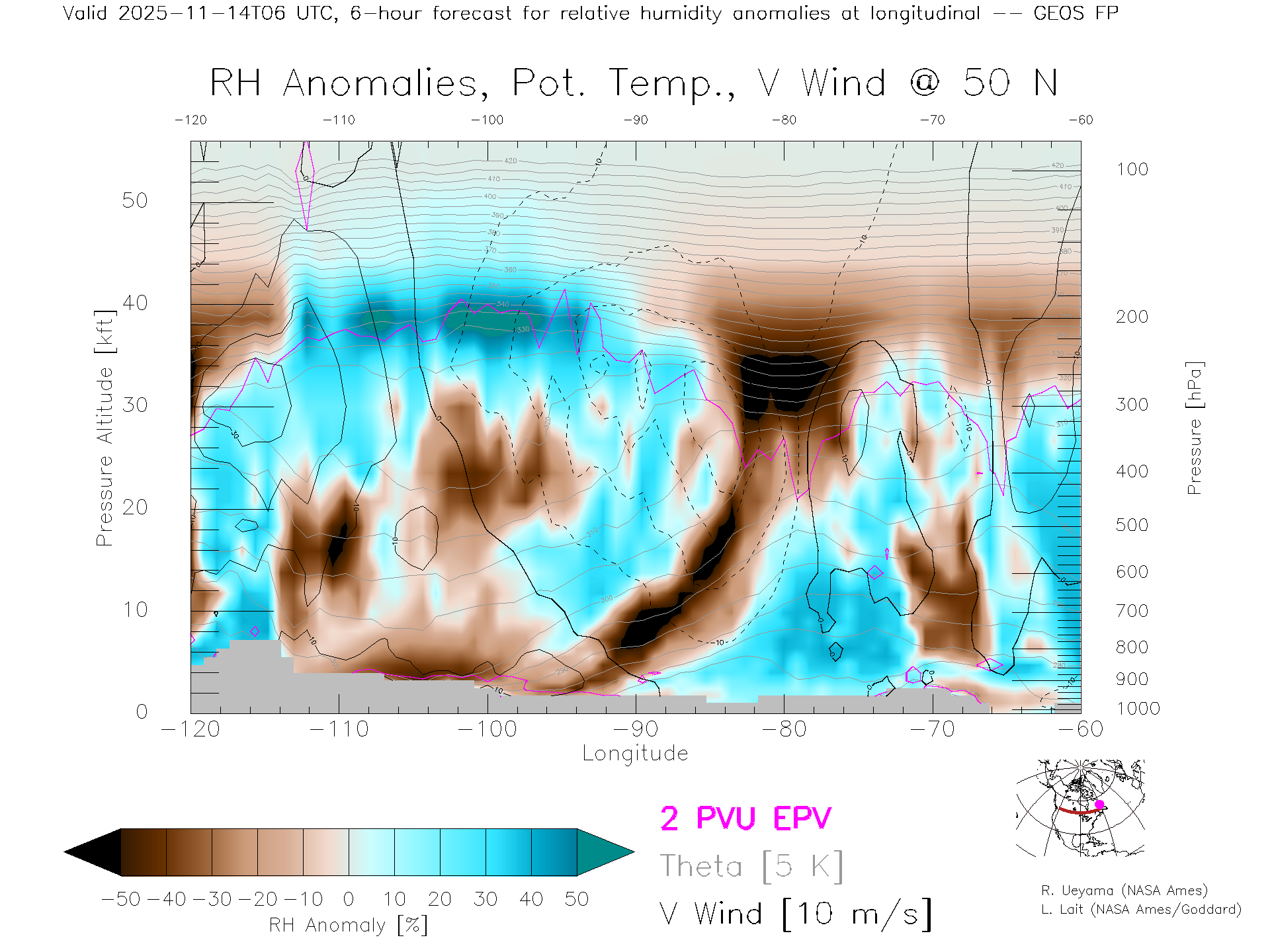 GEOS Forecast Rel. Hum. X-Section (50 N)