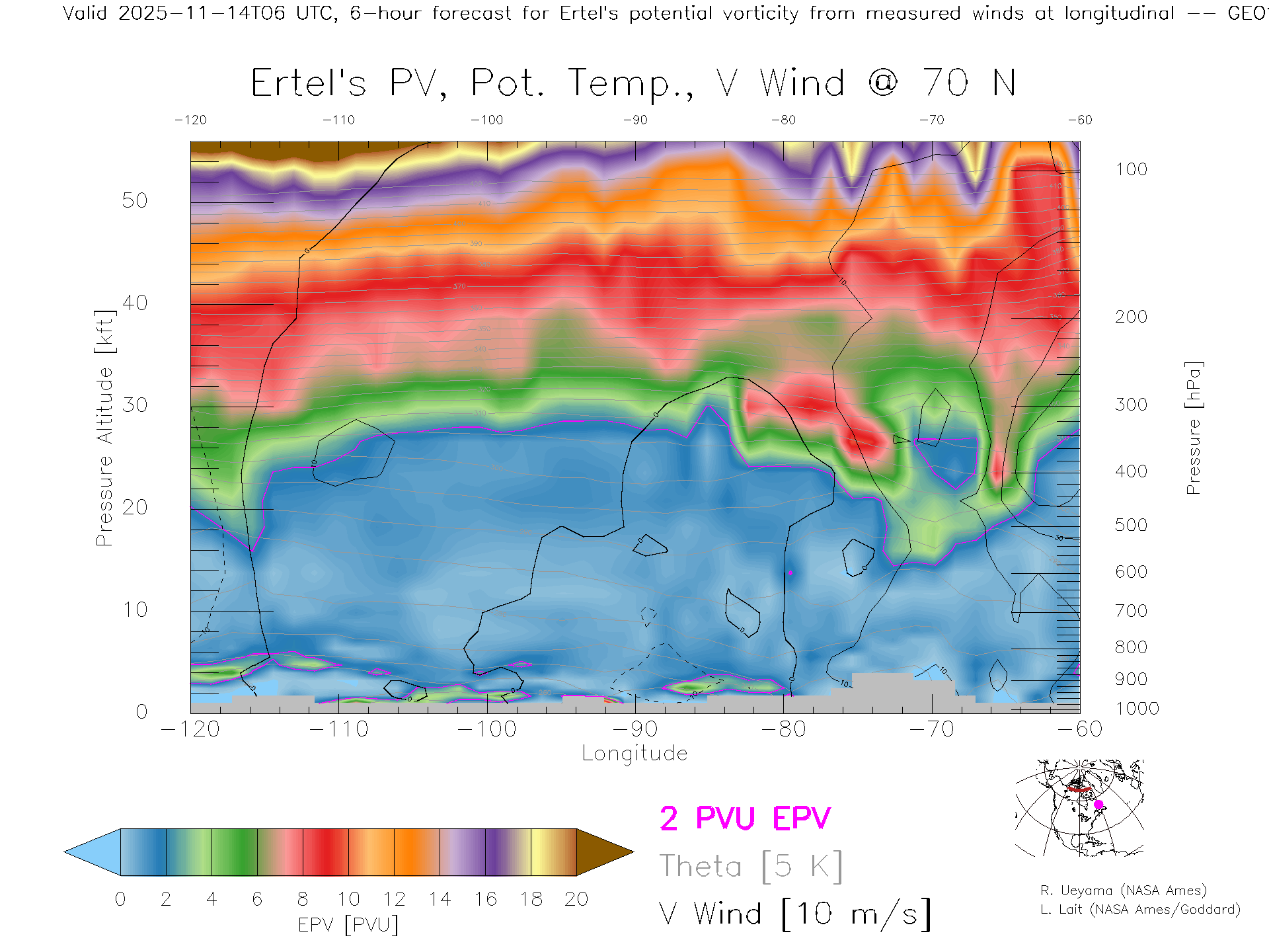 GEOS Forecast PV X-Section (70 N)