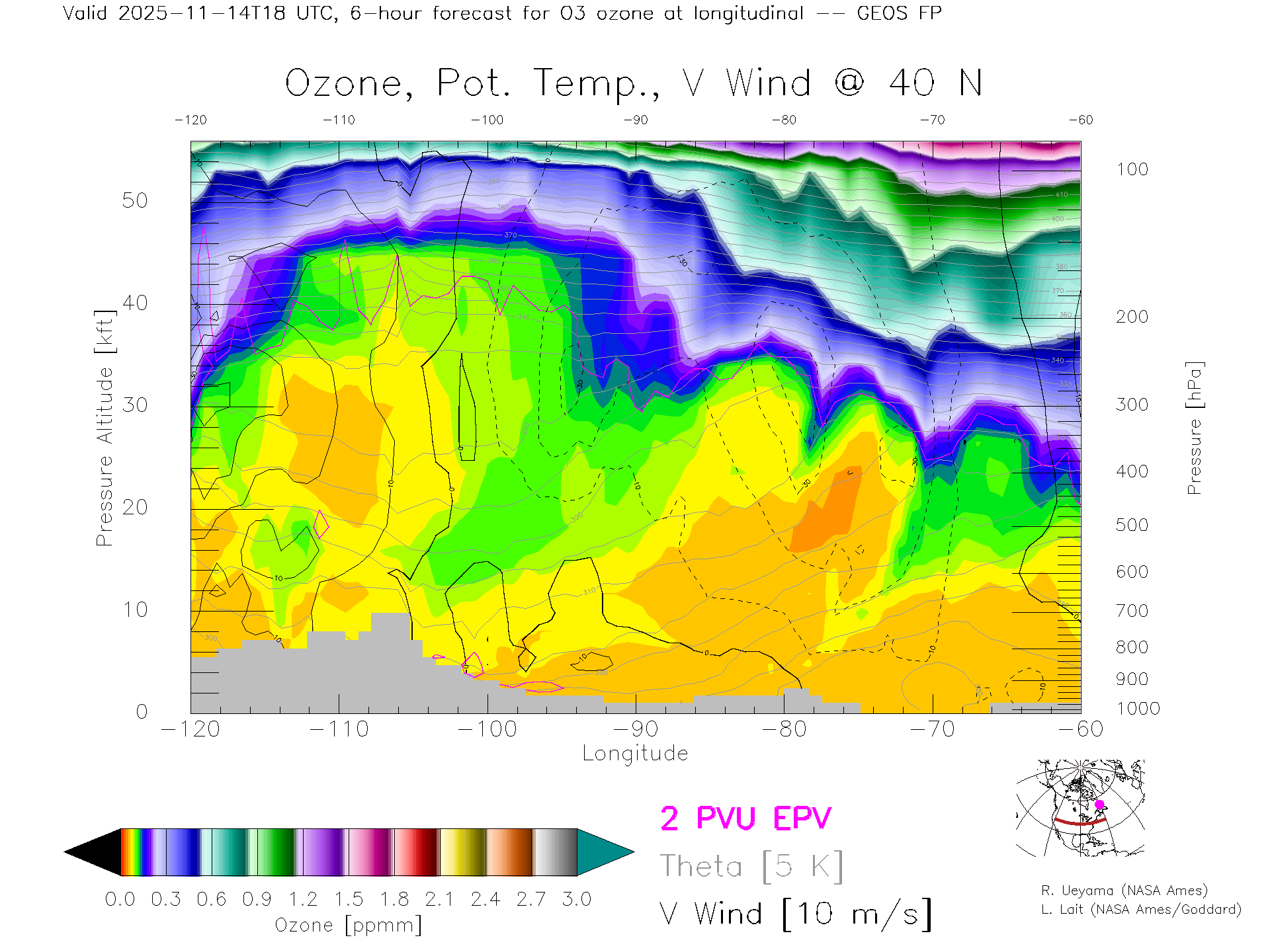 GEOS Forecast Ozone X-Section (40 N)
