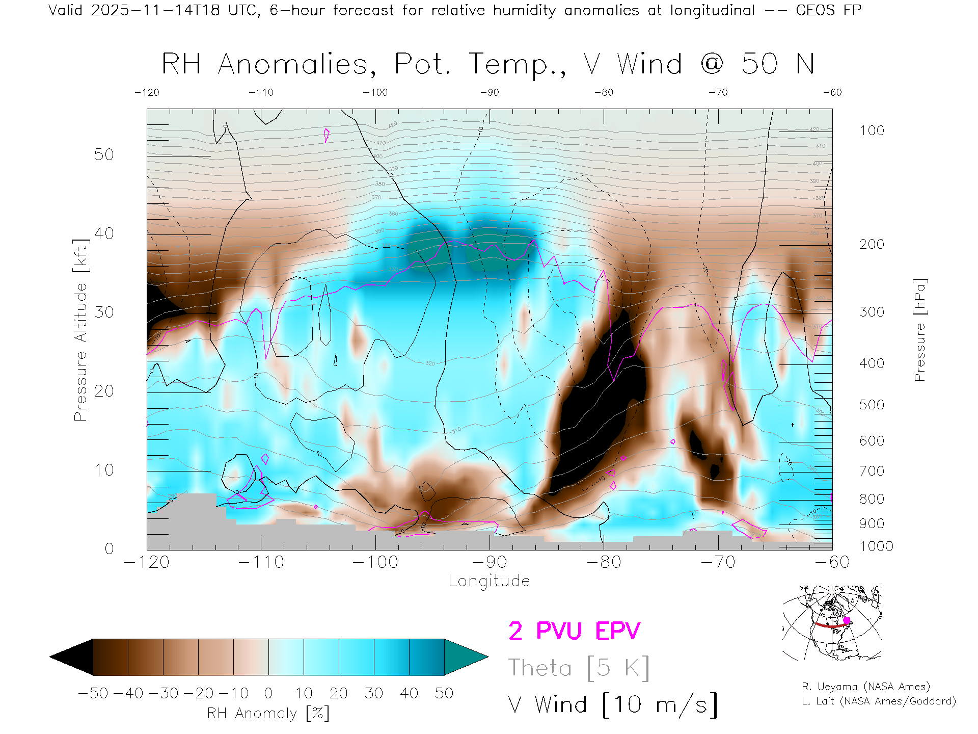 GEOS Forecast Rel. Hum. X-Section (50 N)