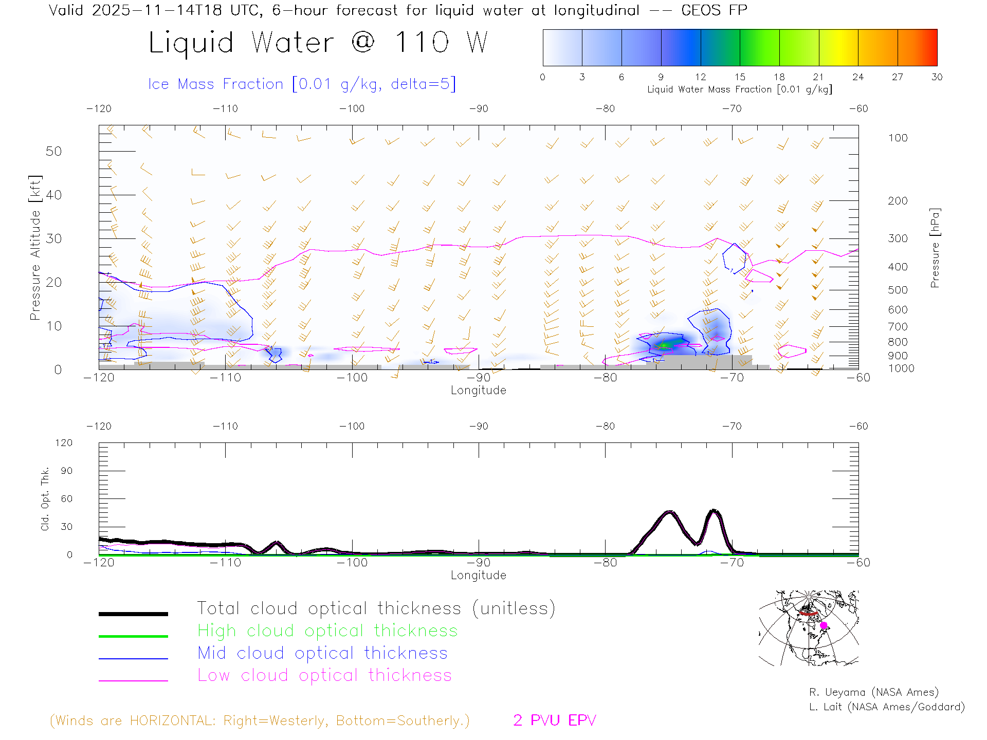 GEOS Forecast Cloud Water Content X-Section (70 N)