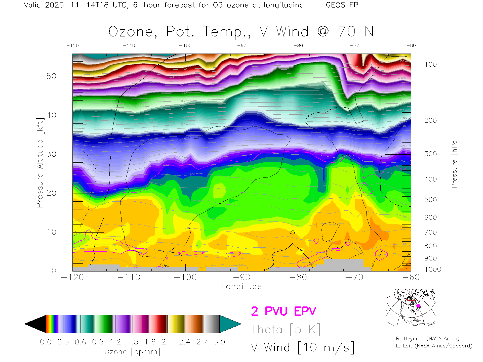GEOS Forecast Ozone X-Section (70 N)