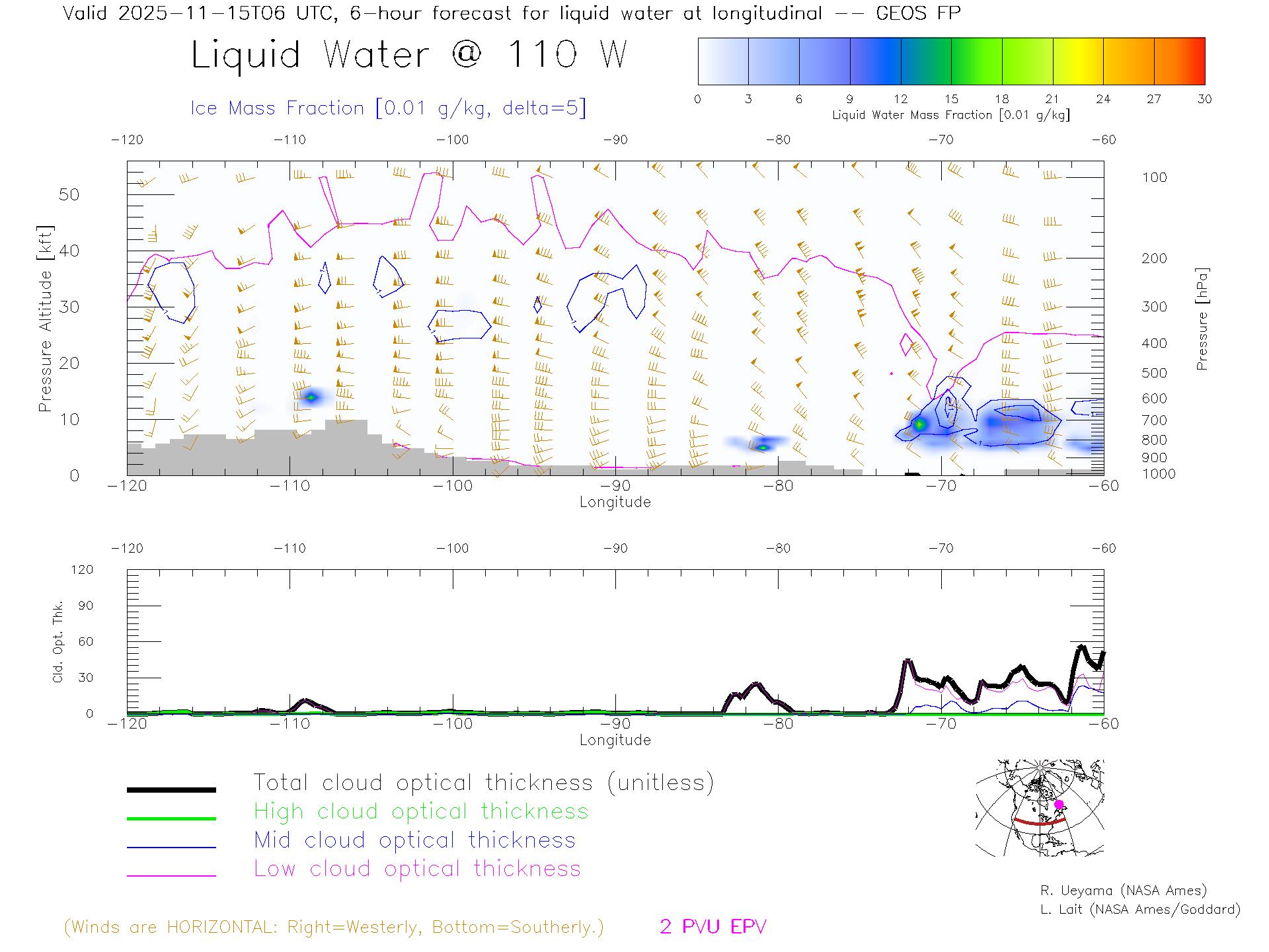 GEOS Forecast Cloud Water Content X-Section (40 N)