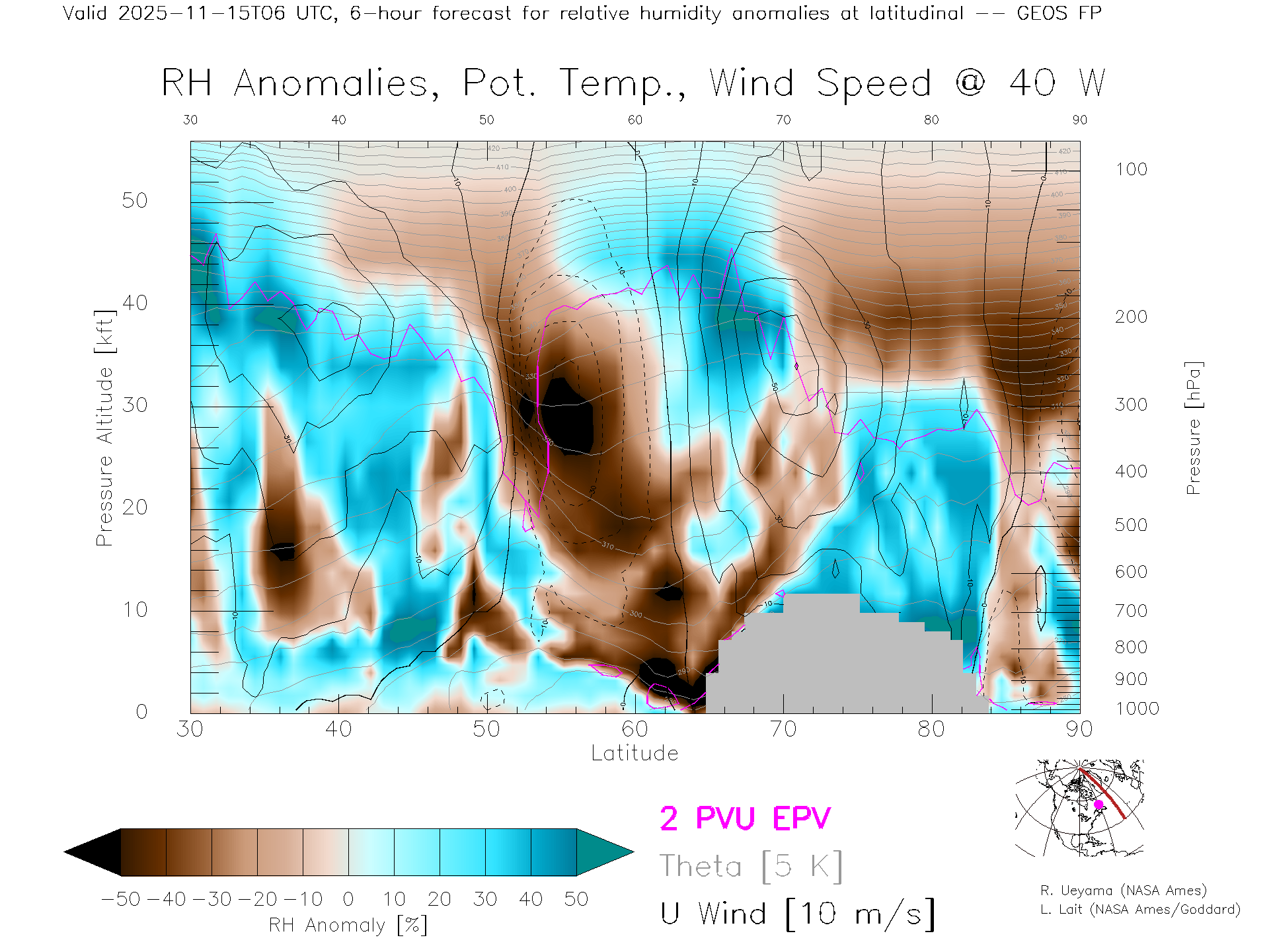GEOS Forecast Rel. Hum. X-Section (40 W)