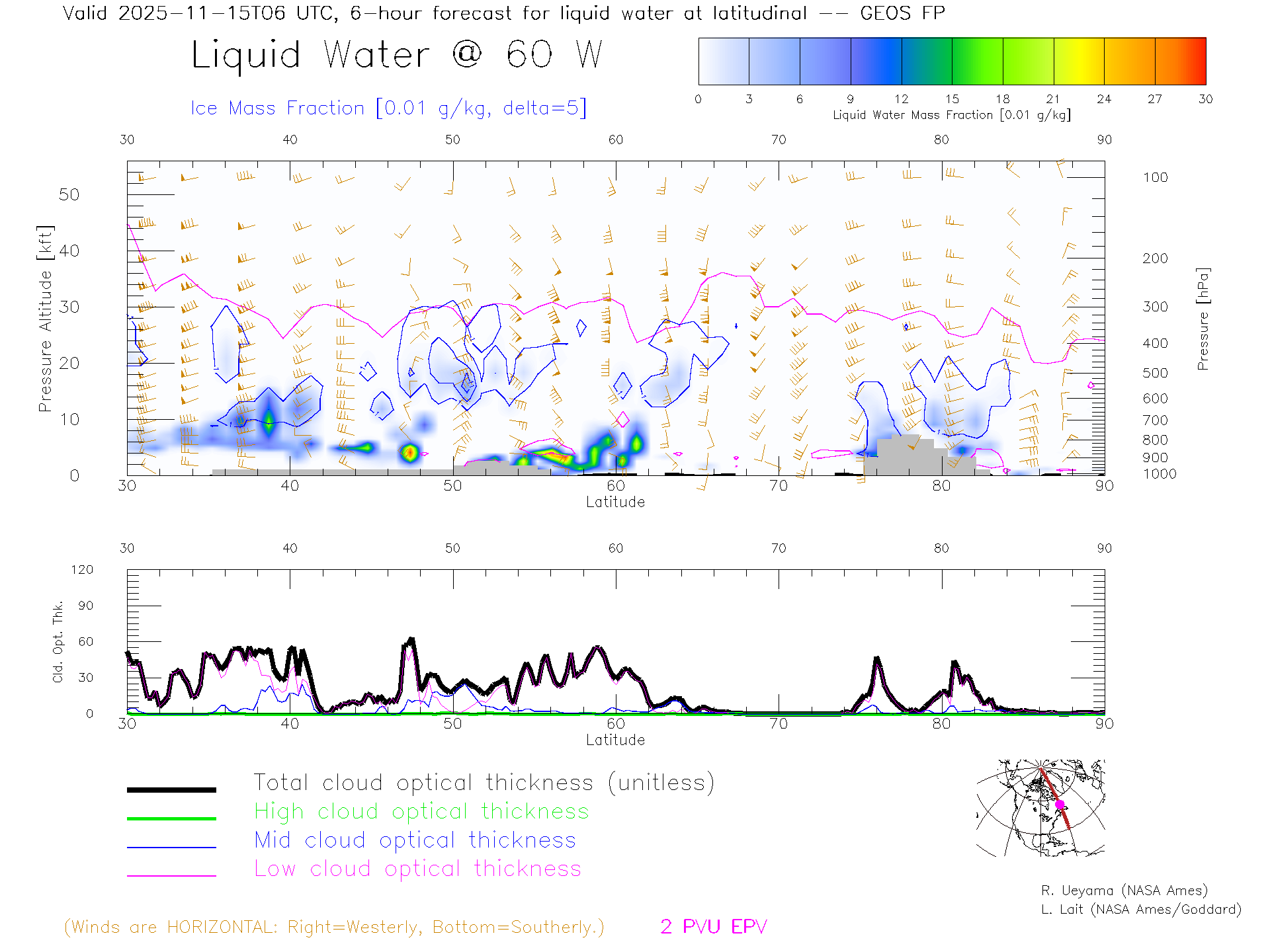 GEOS Forecast Cloud Water Content X-Section (60 W)