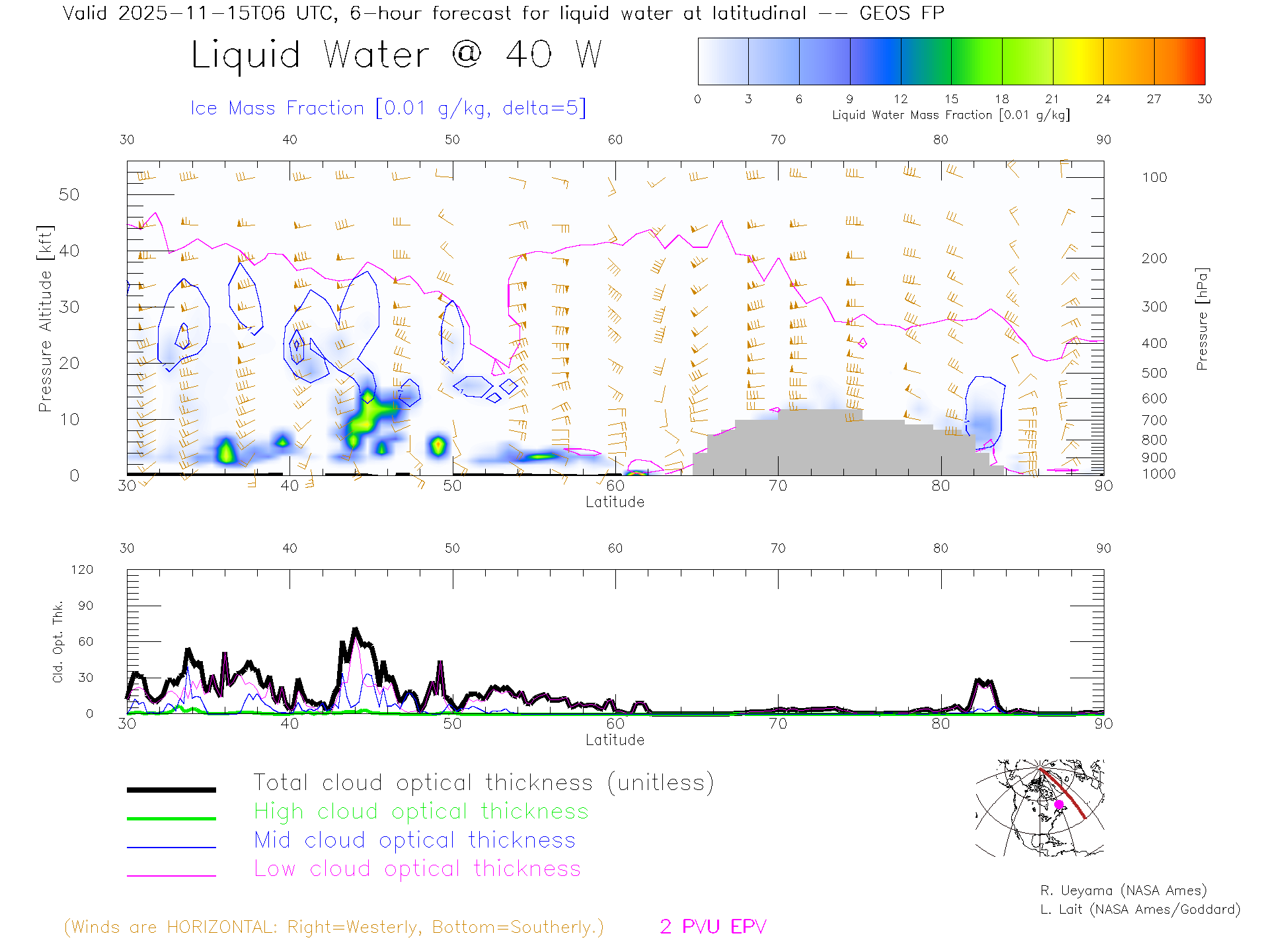 GEOS Forecast Cloud Water Content X-Section (40 W)