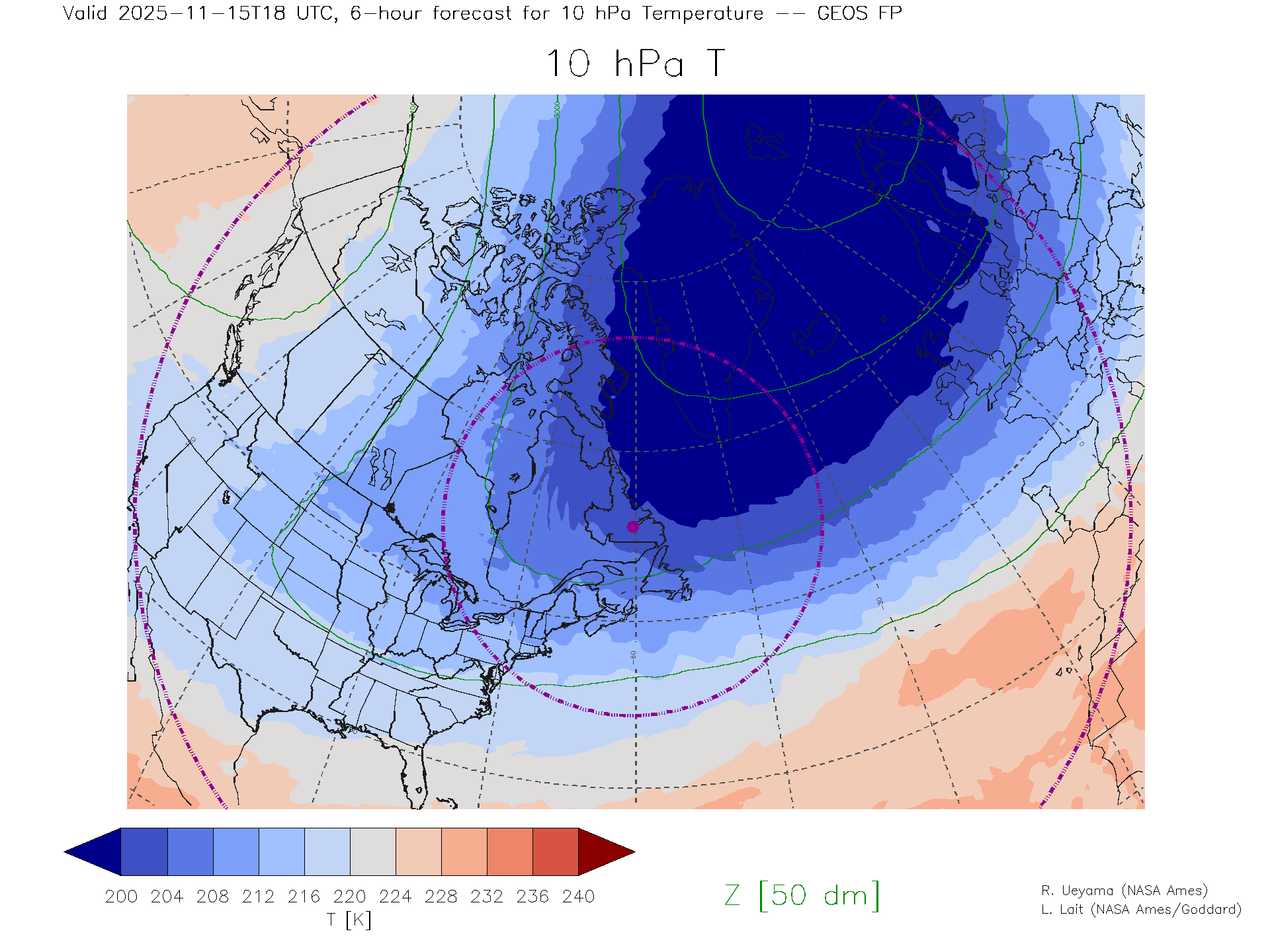 GEOS Forecast 10 hPa Temp.