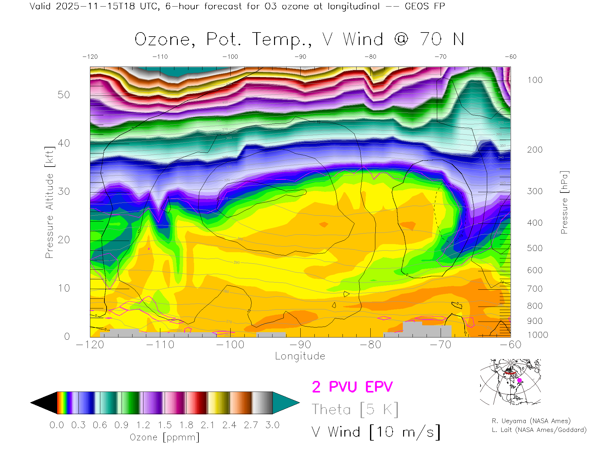 GEOS Forecast Ozone X-Section (70 N)