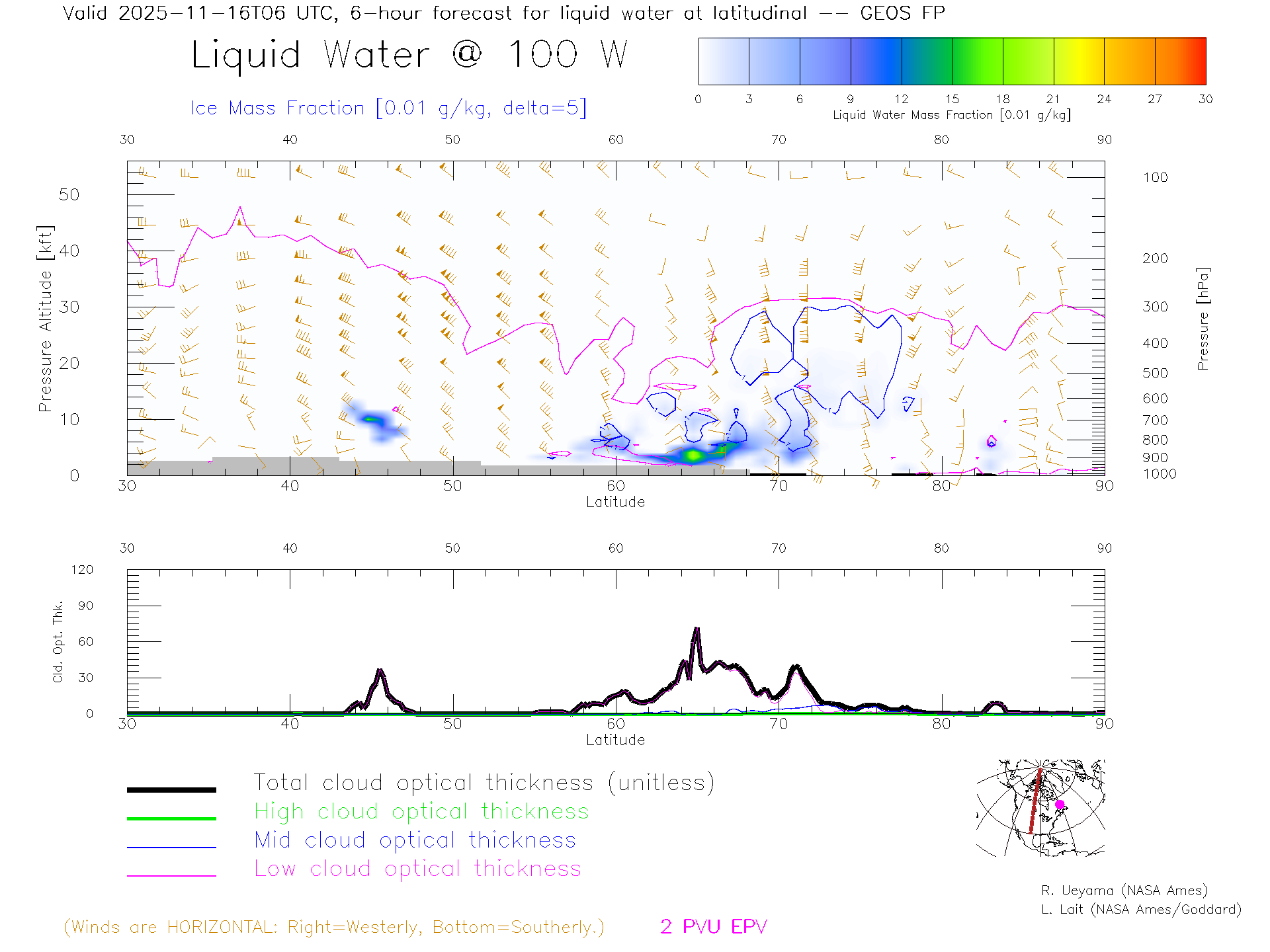 GEOS Forecast Cloud Water Content X-Section (100 W)