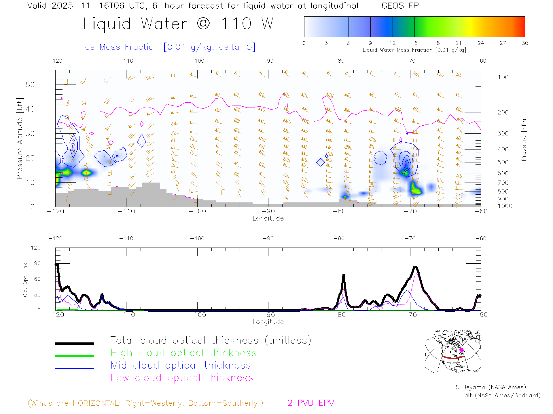 GEOS Forecast Cloud Water Content X-Section (40 N)