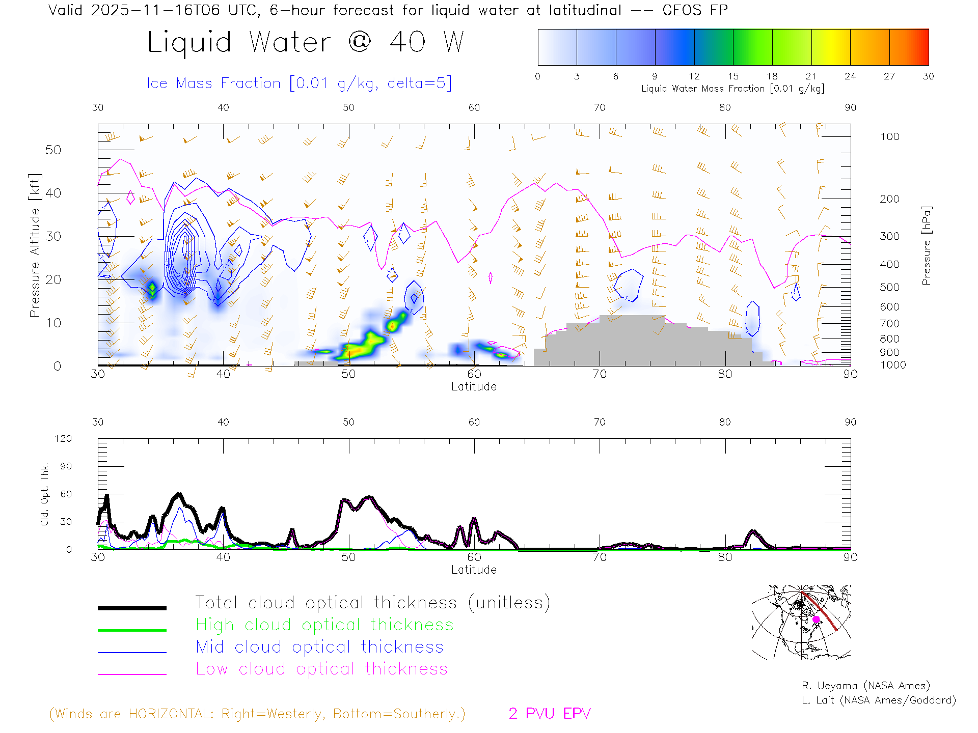GEOS Forecast Cloud Water Content X-Section (40 W)