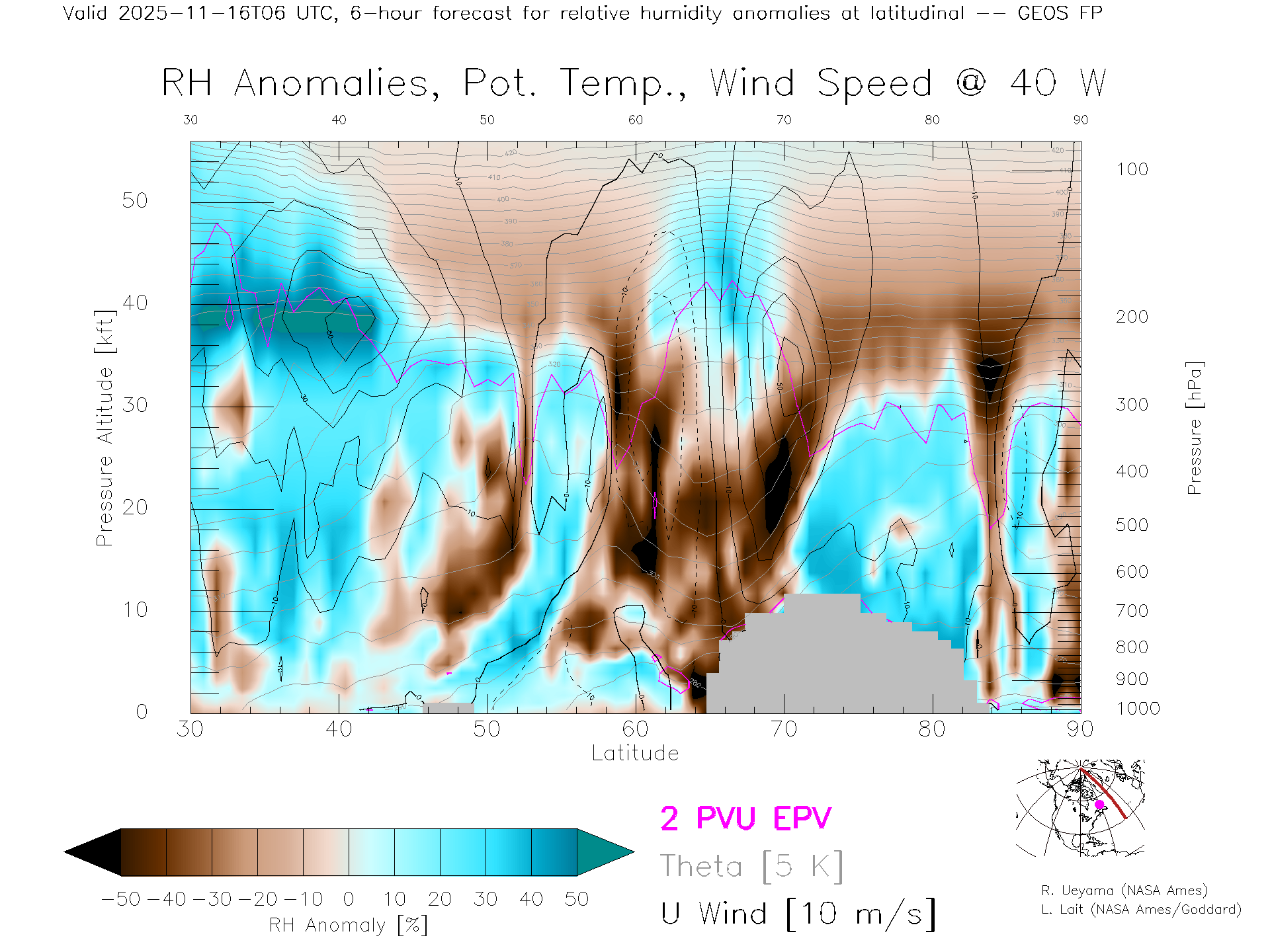 GEOS Forecast Rel. Hum. X-Section (40 W)