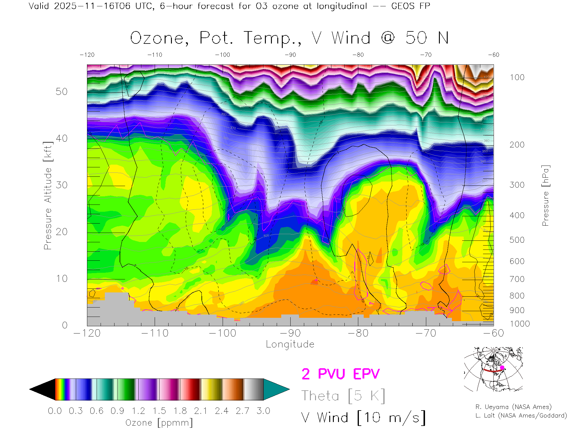 GEOS Forecast Ozone X-Section (50 N)