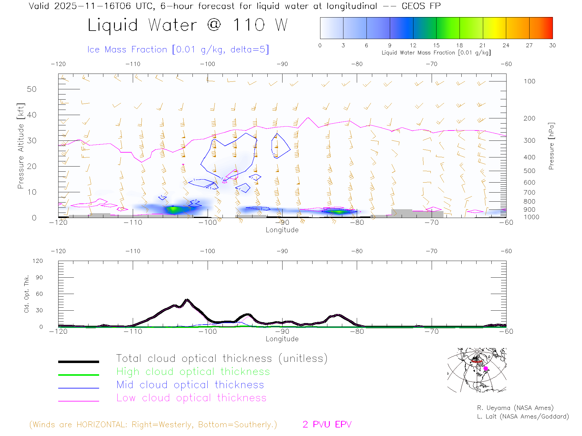 GEOS Forecast Cloud Water Content X-Section (70 N)