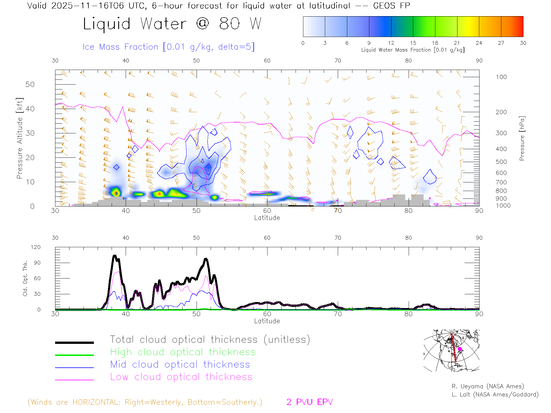 GEOS Forecast Cloud Water Content X-Section (80 W)
