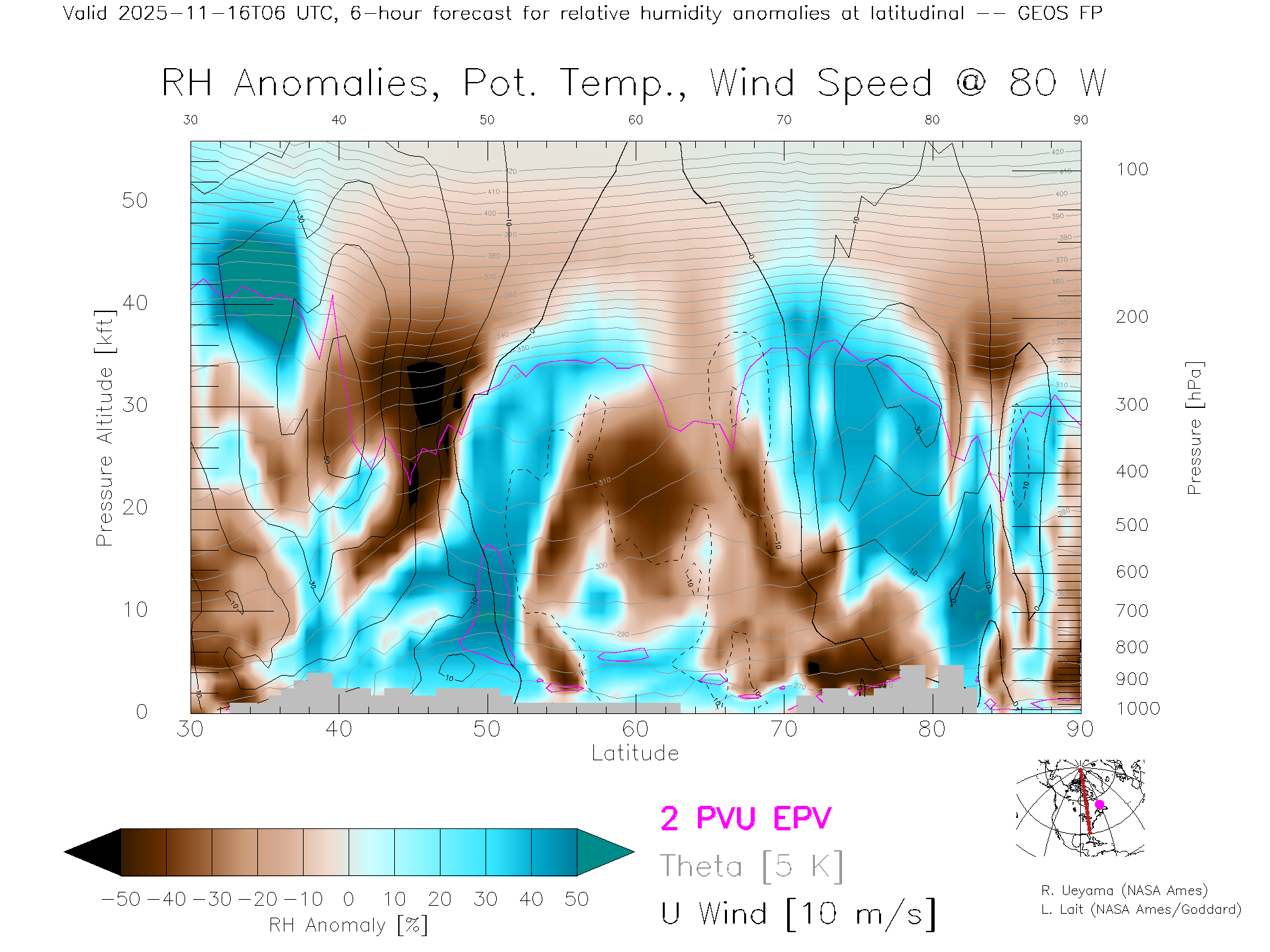 GEOS Forecast Rel. Hum. X-Section (80 W)