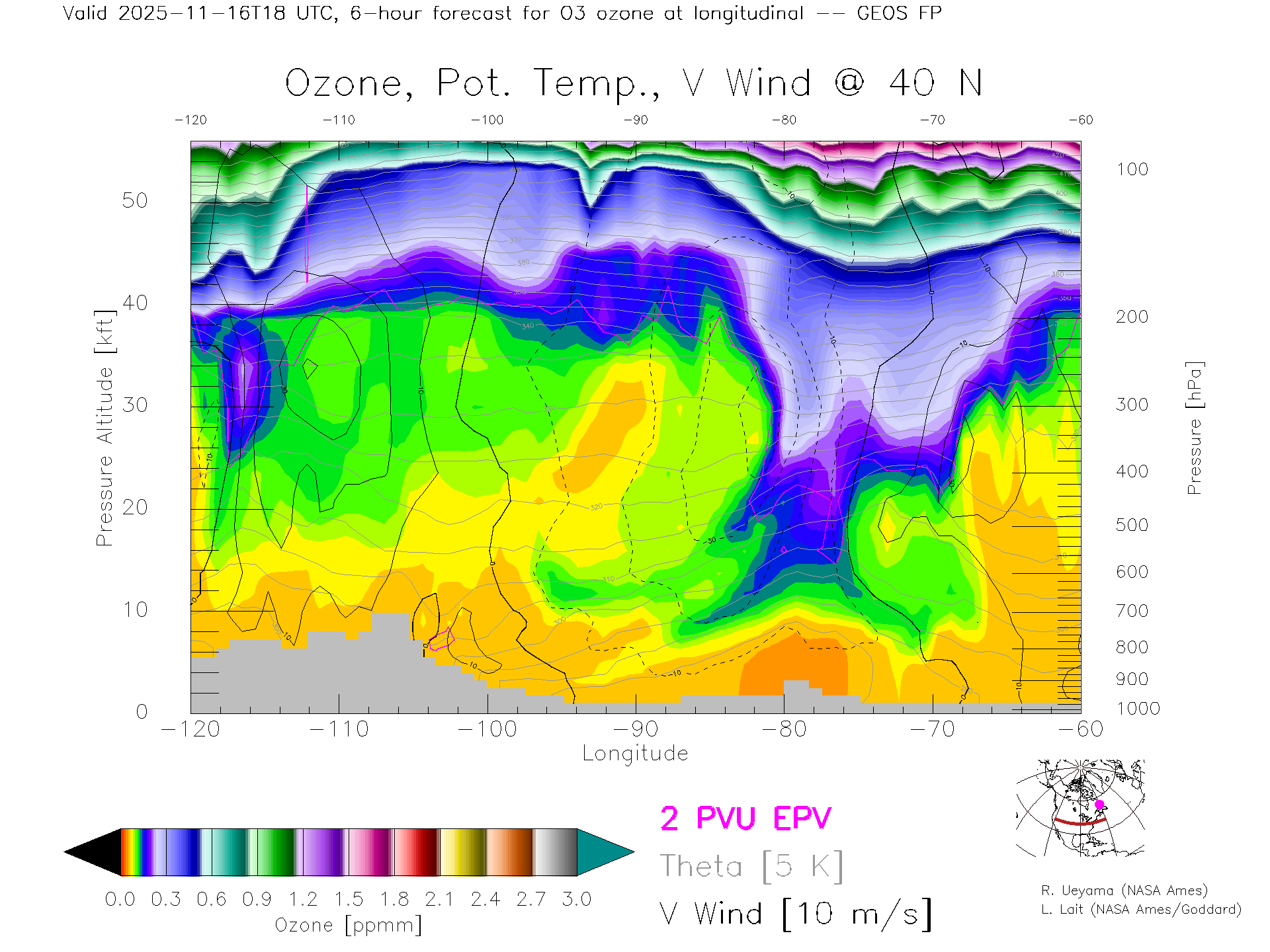 GEOS Forecast Ozone X-Section (40 N)