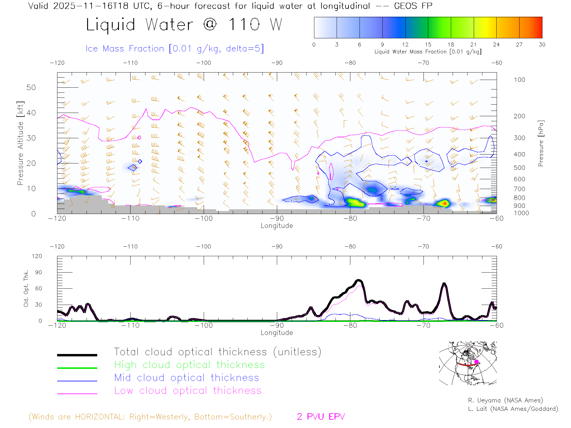 GEOS Forecast Cloud Water Content X-Section (50 N)