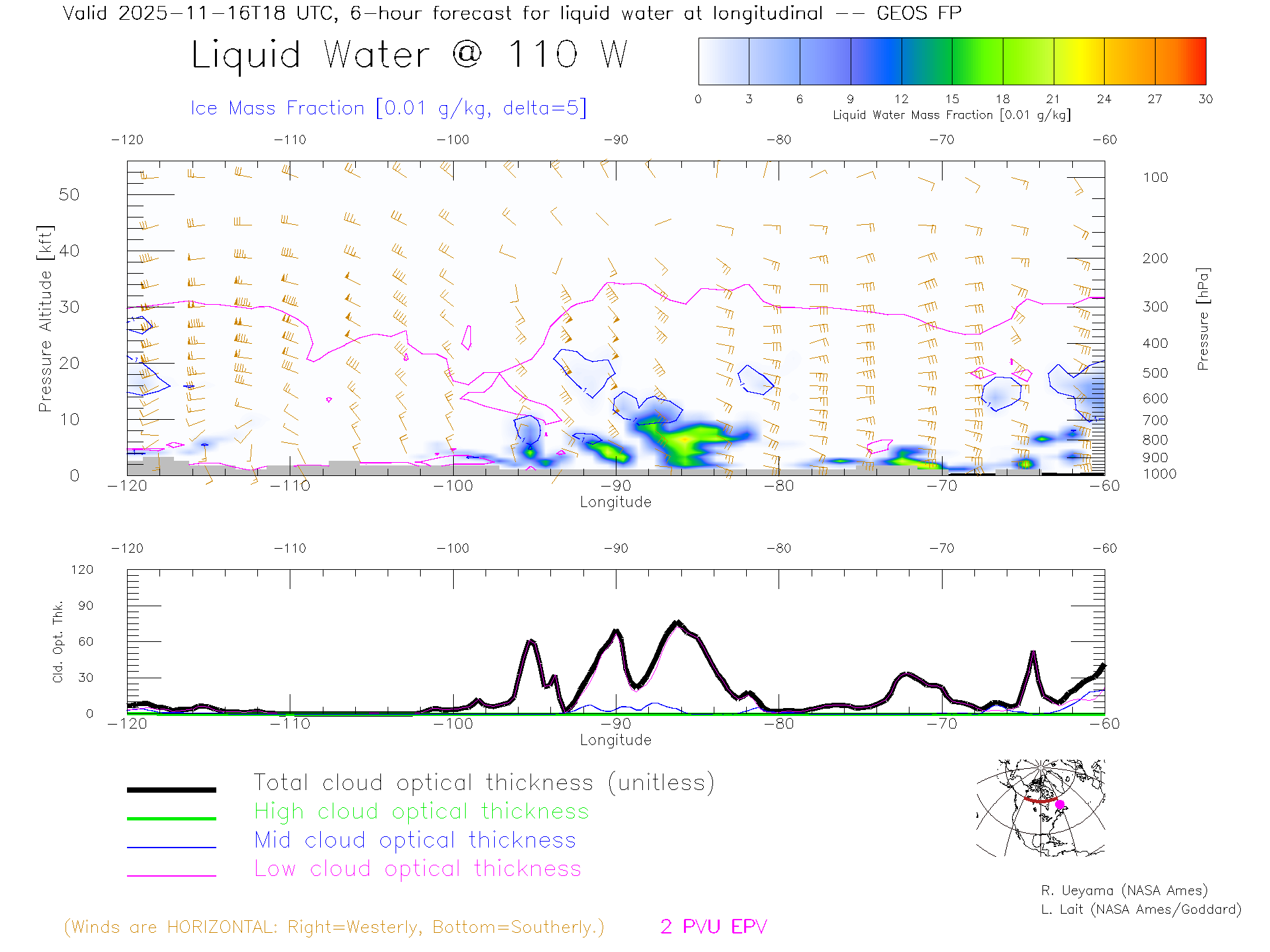 GEOS Forecast Cloud Water Content X-Section (60 N)