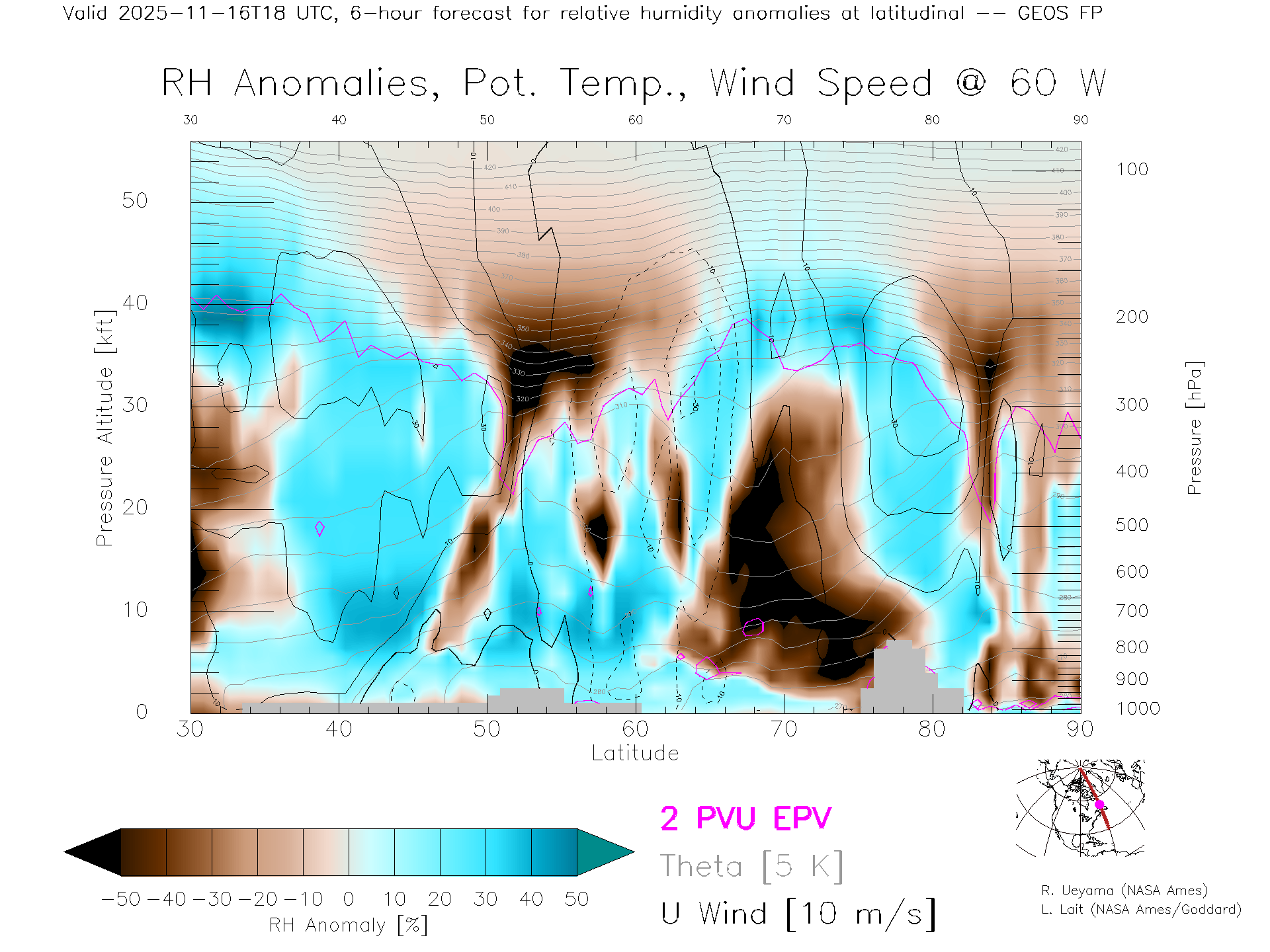 GEOS Forecast Rel. Hum. X-Section (60 W)
