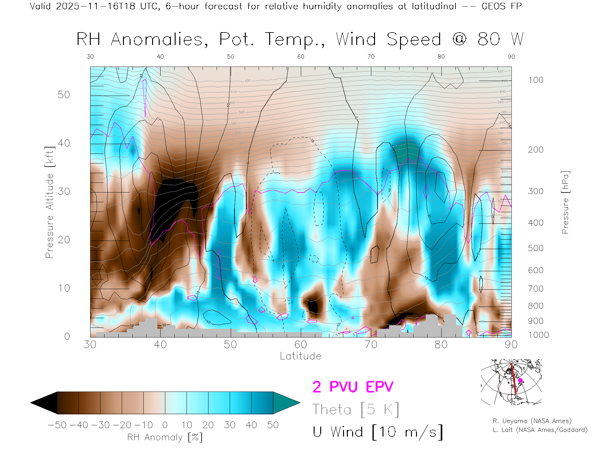 GEOS Forecast Rel. Hum. X-Section (80 W)