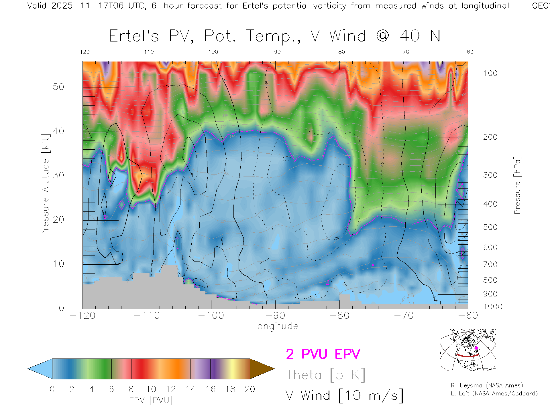 GEOS Forecast PV X-Section (40 N)