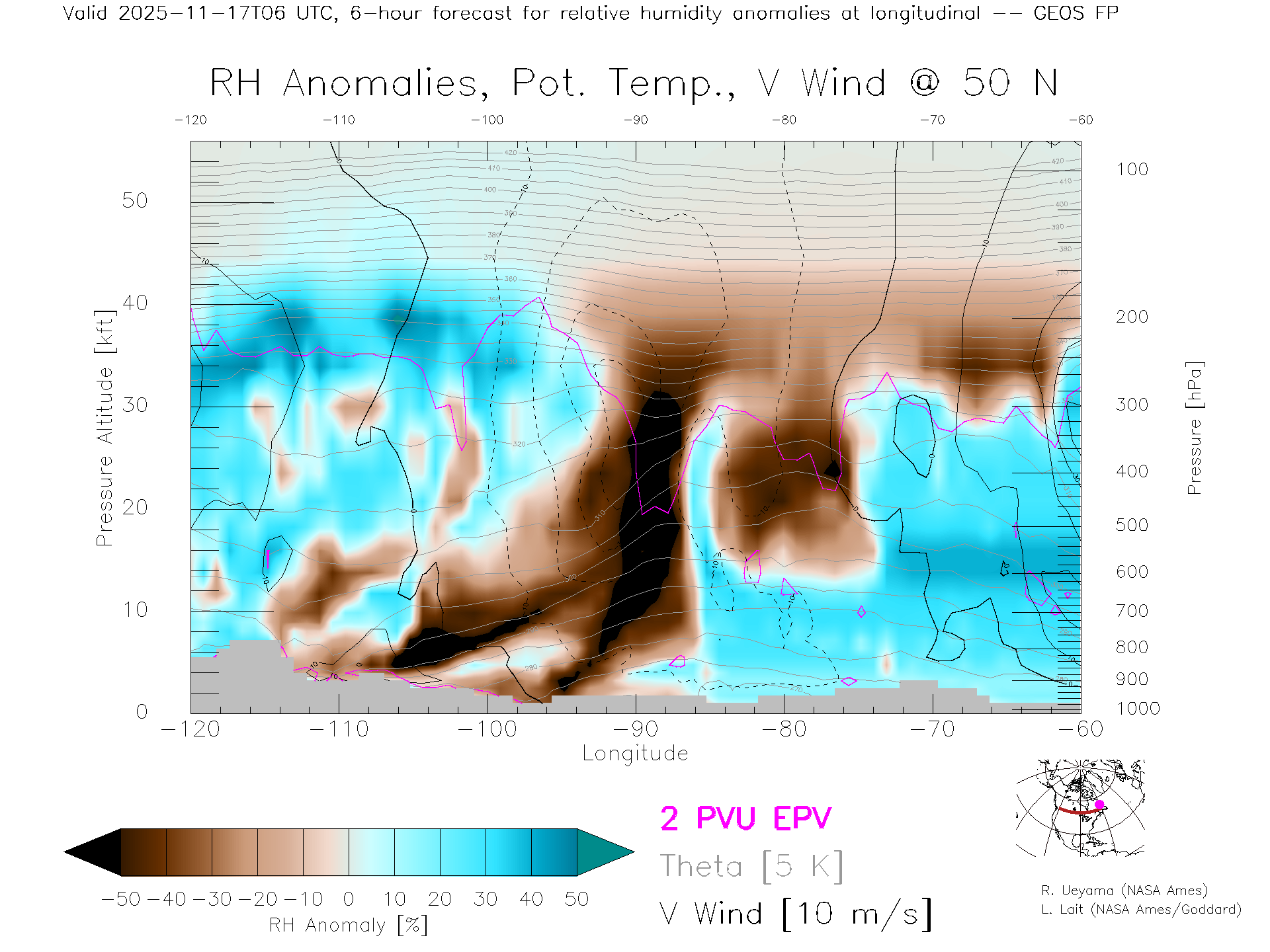 GEOS Forecast Rel. Hum. X-Section (50 N)