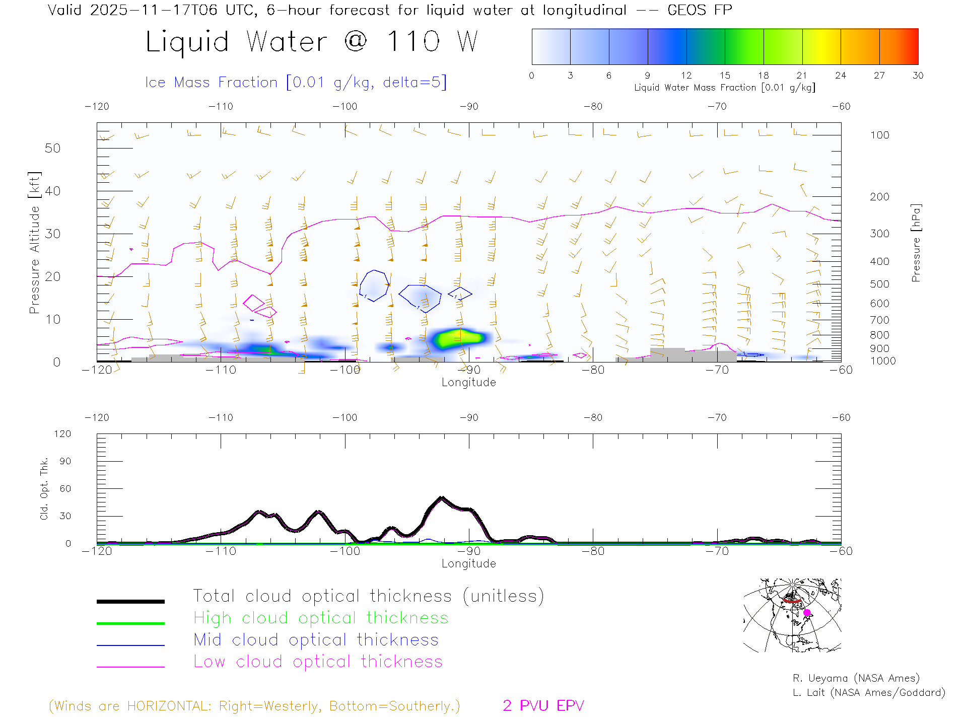 GEOS Forecast Cloud Water Content X-Section (70 N)