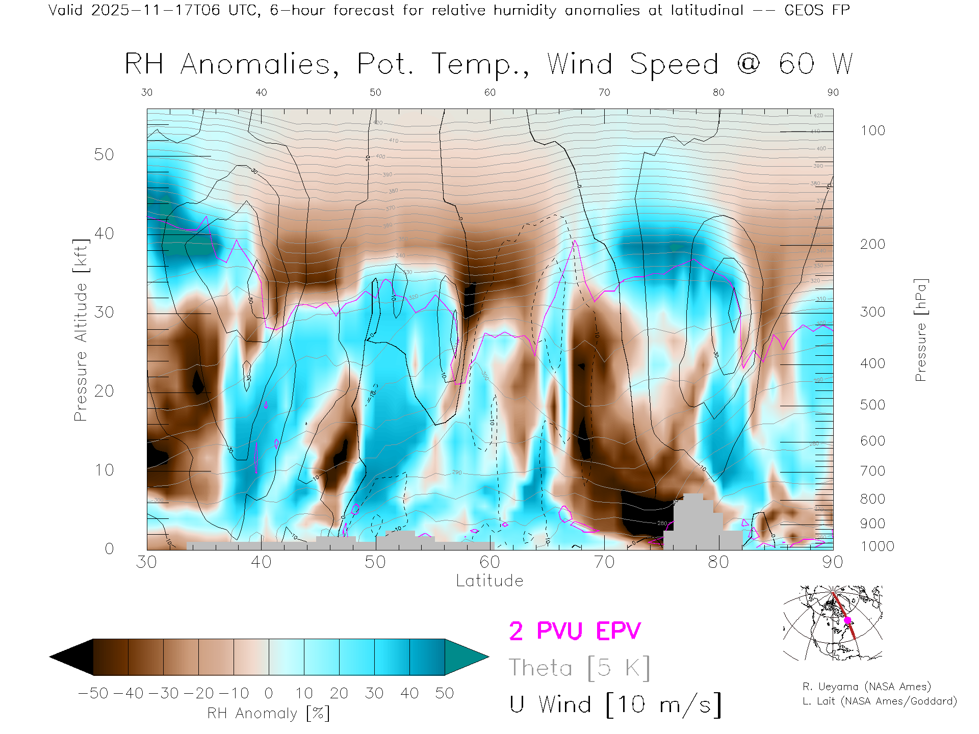 GEOS Forecast Rel. Hum. X-Section (60 W)