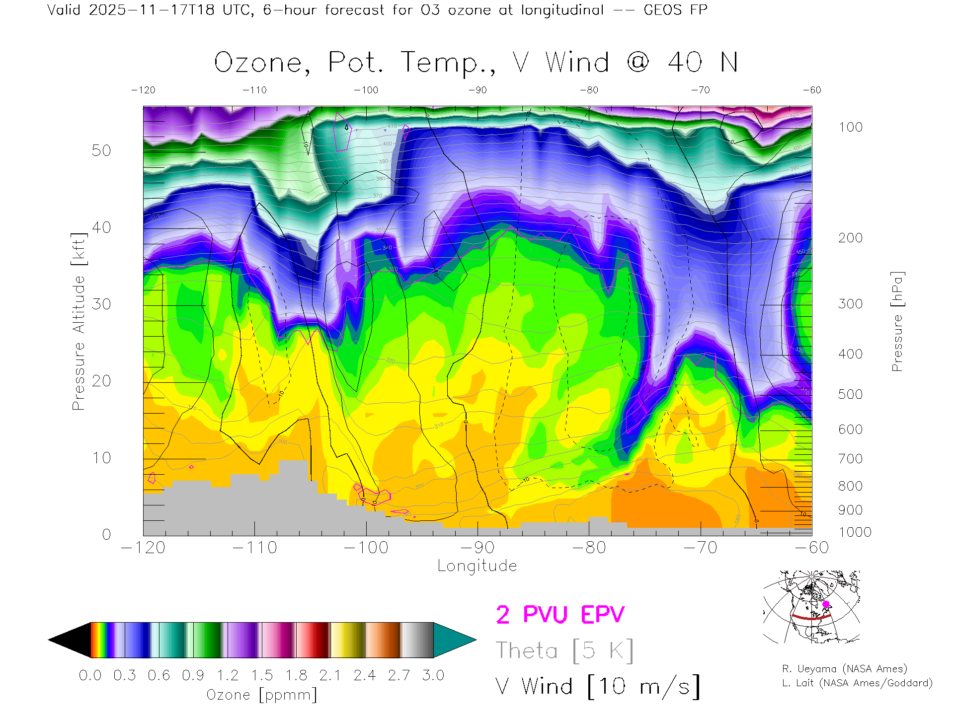GEOS Forecast Ozone X-Section (40 N)