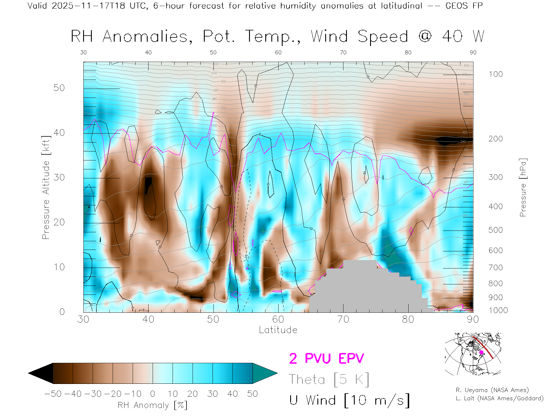 GEOS Forecast Rel. Hum. X-Section (40 W)