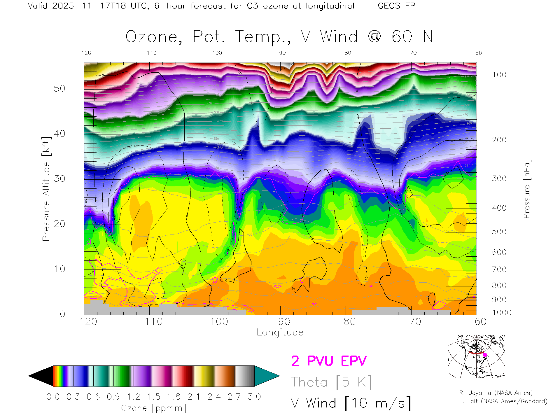 GEOS Forecast Ozone X-Section (60 N)