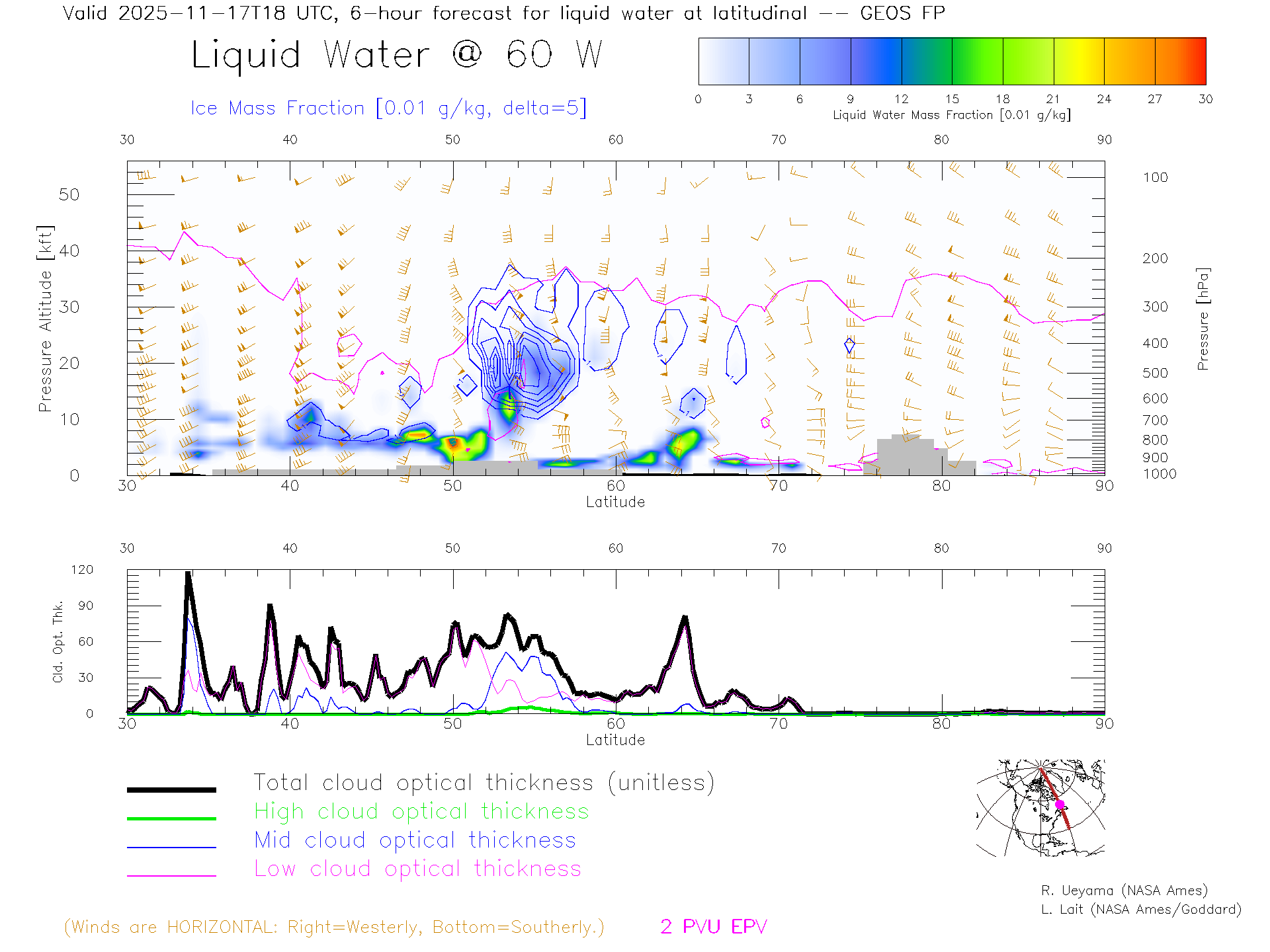 GEOS Forecast Cloud Water Content X-Section (60 W)