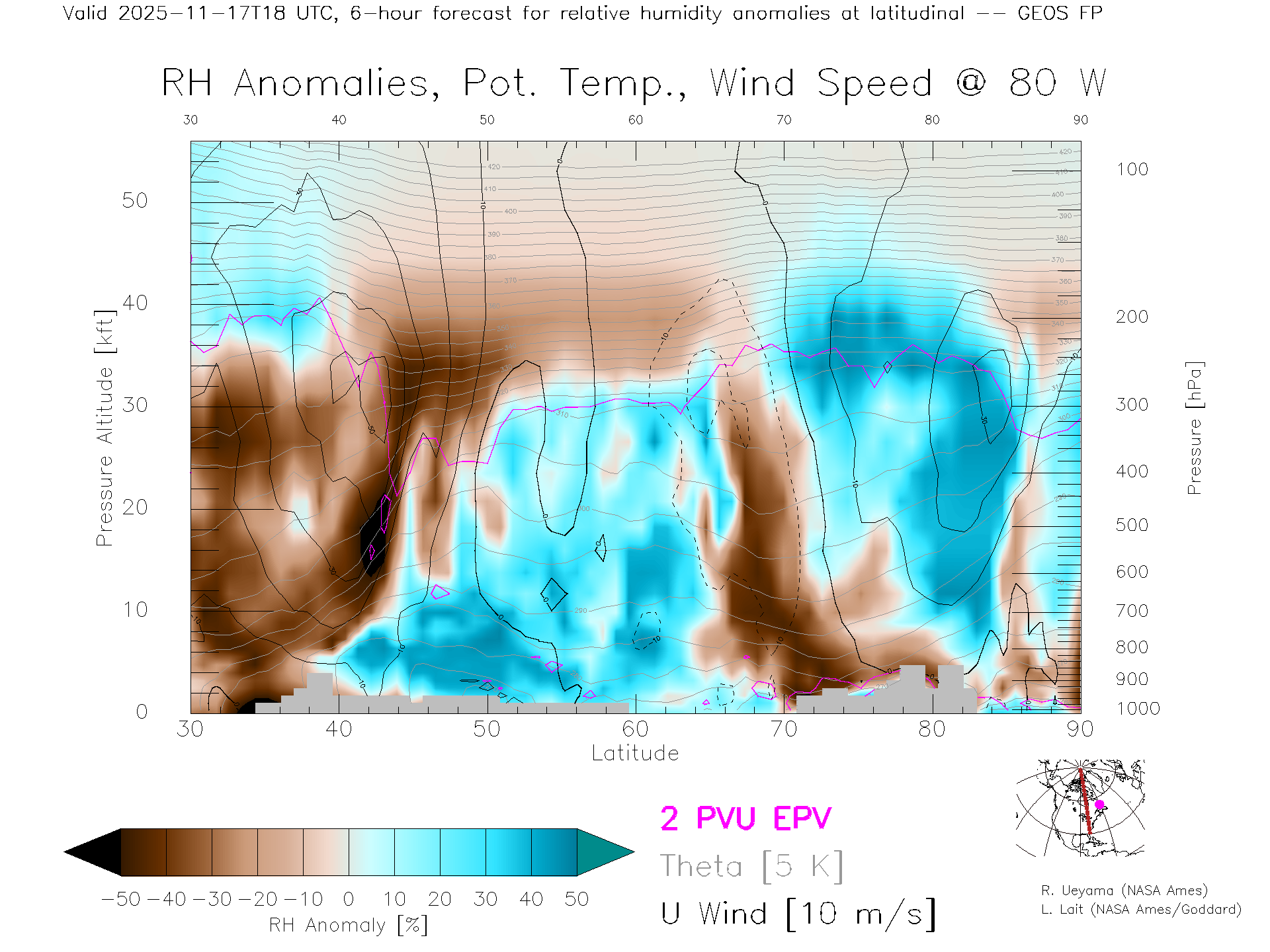 GEOS Forecast Rel. Hum. X-Section (80 W)