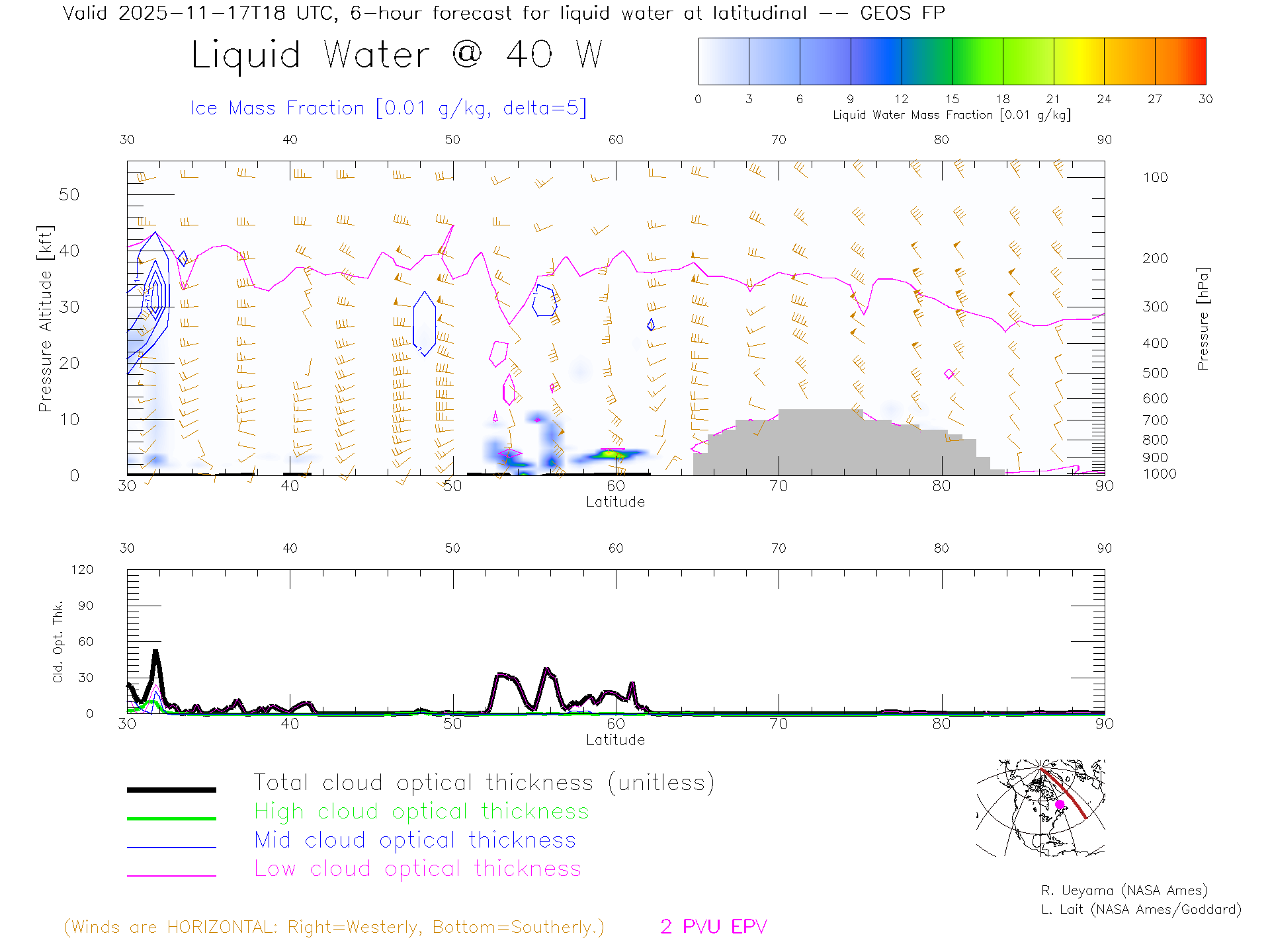 GEOS Forecast Cloud Water Content X-Section (40 W)