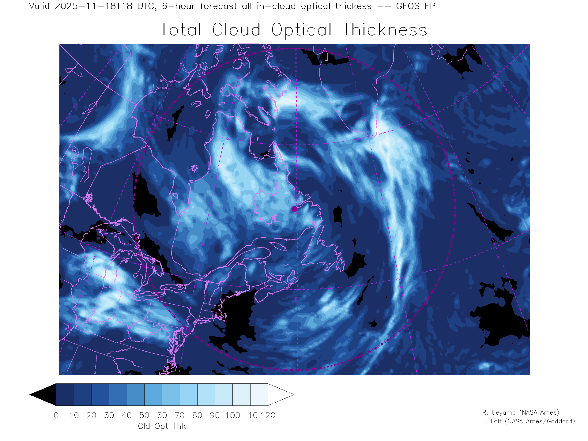 GEOS Forecast Total Cloud Optical thickness