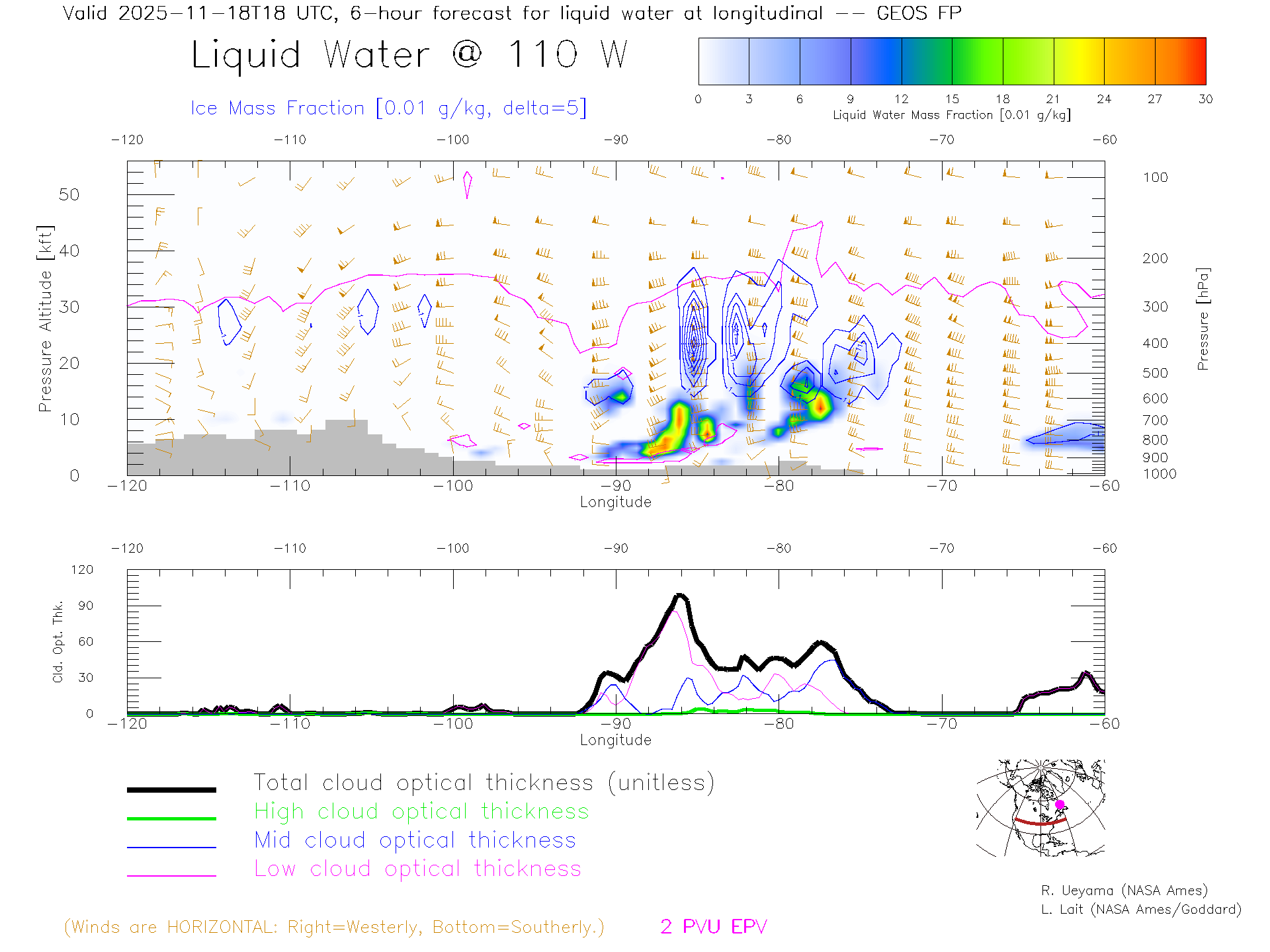 GEOS Forecast Cloud Water Content X-Section (40 N)