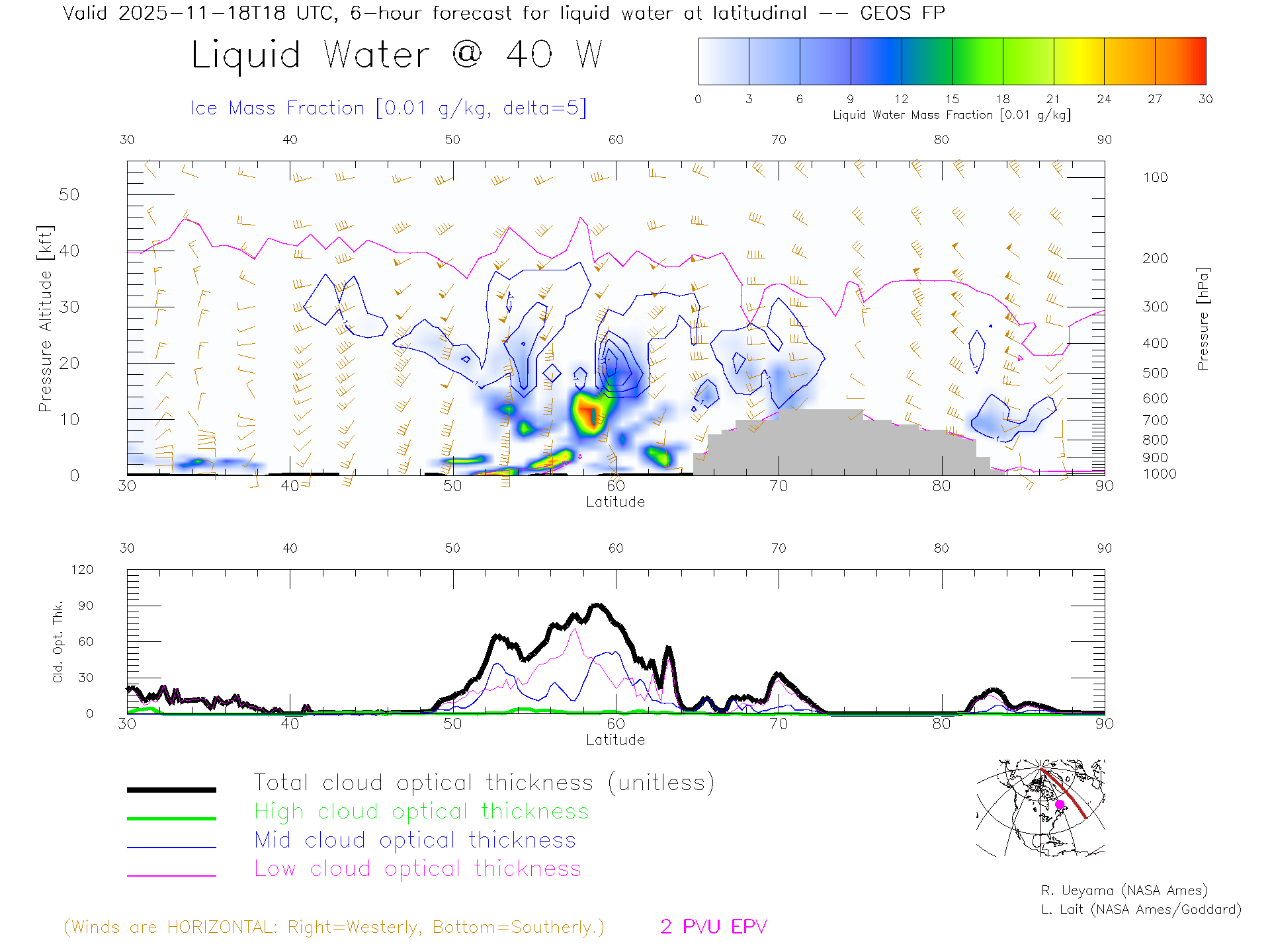 GEOS Forecast Cloud Water Content X-Section (40 W)