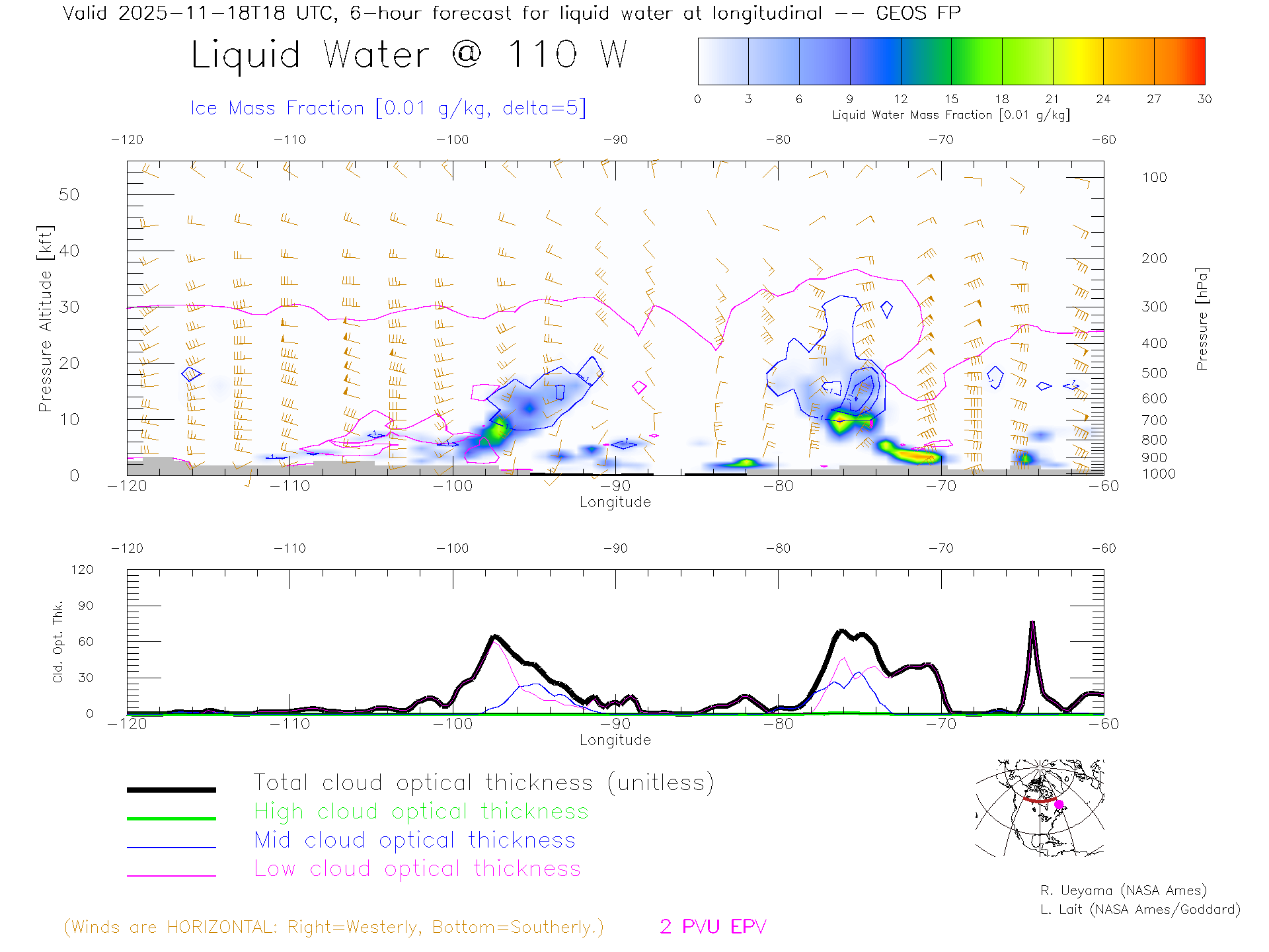 GEOS Forecast Cloud Water Content X-Section (60 N)
