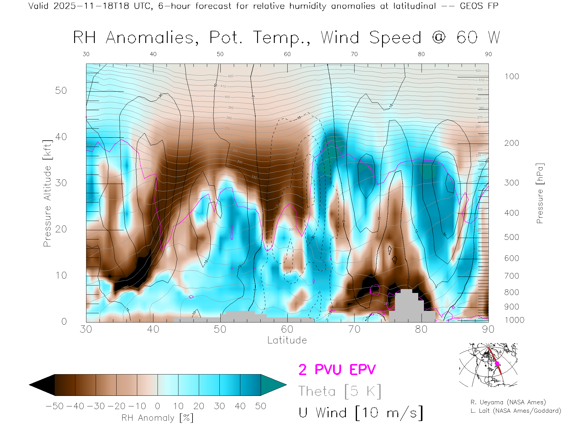 GEOS Forecast Rel. Hum. X-Section (60 W)