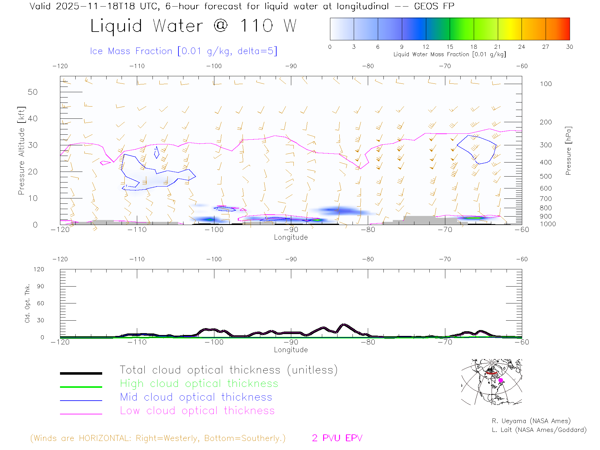 GEOS Forecast Cloud Water Content X-Section (70 N)