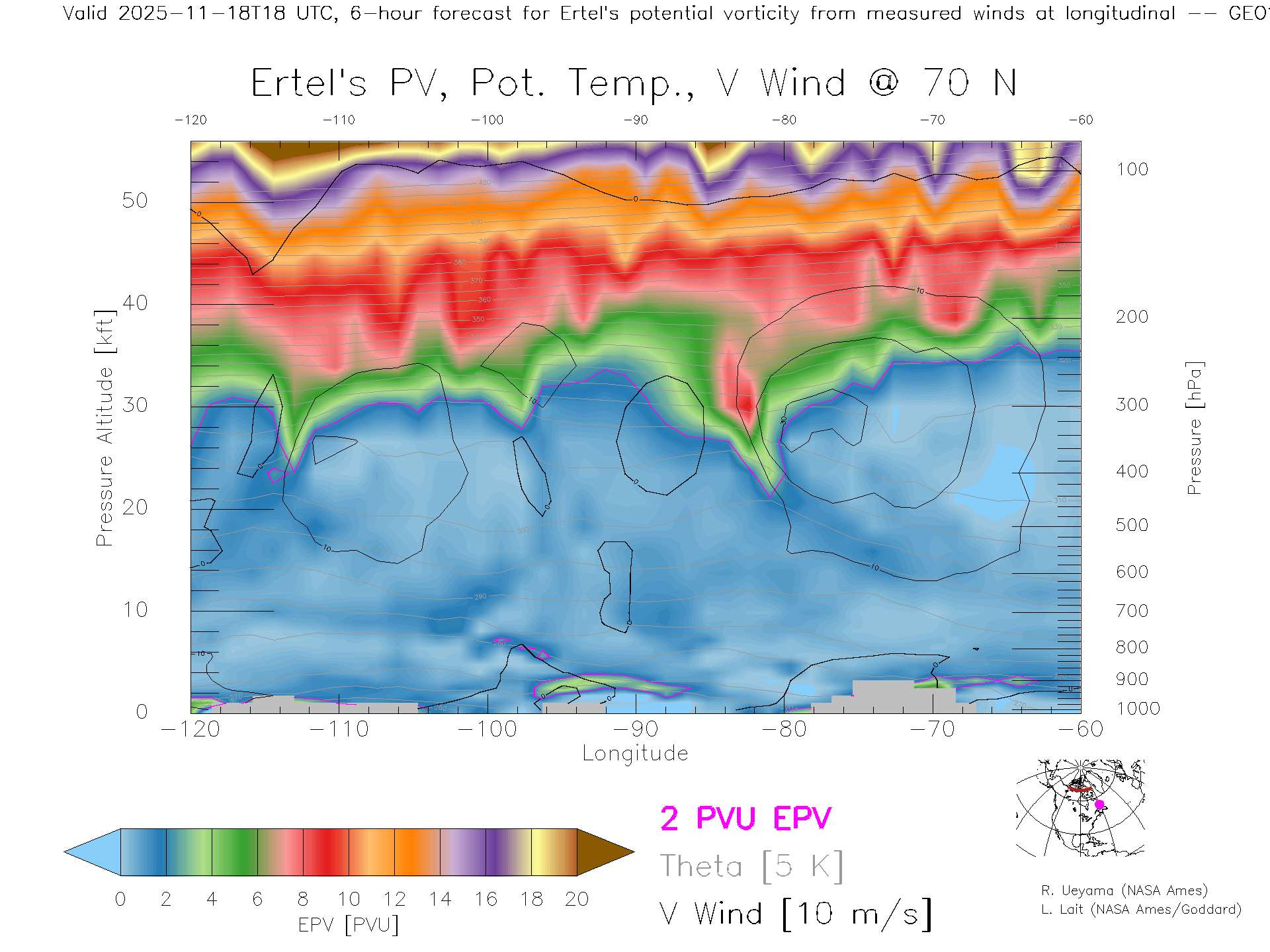 GEOS Forecast PV X-Section (70 N)