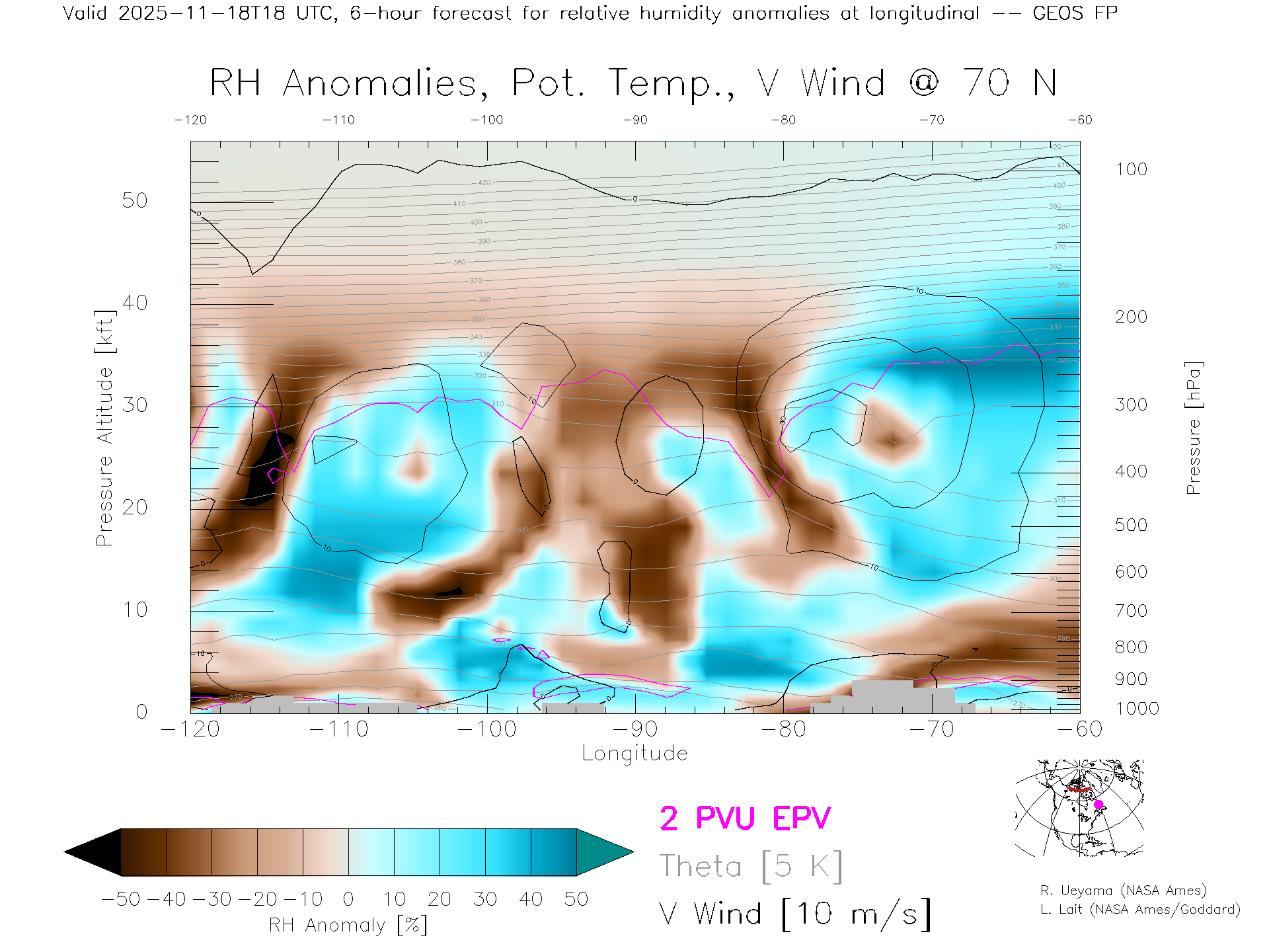 GEOS Forecast Rel. Hum. X-Section (70 N)