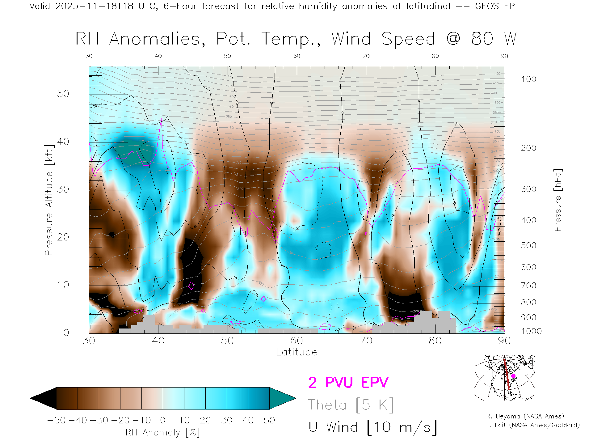 GEOS Forecast Rel. Hum. X-Section (80 W)