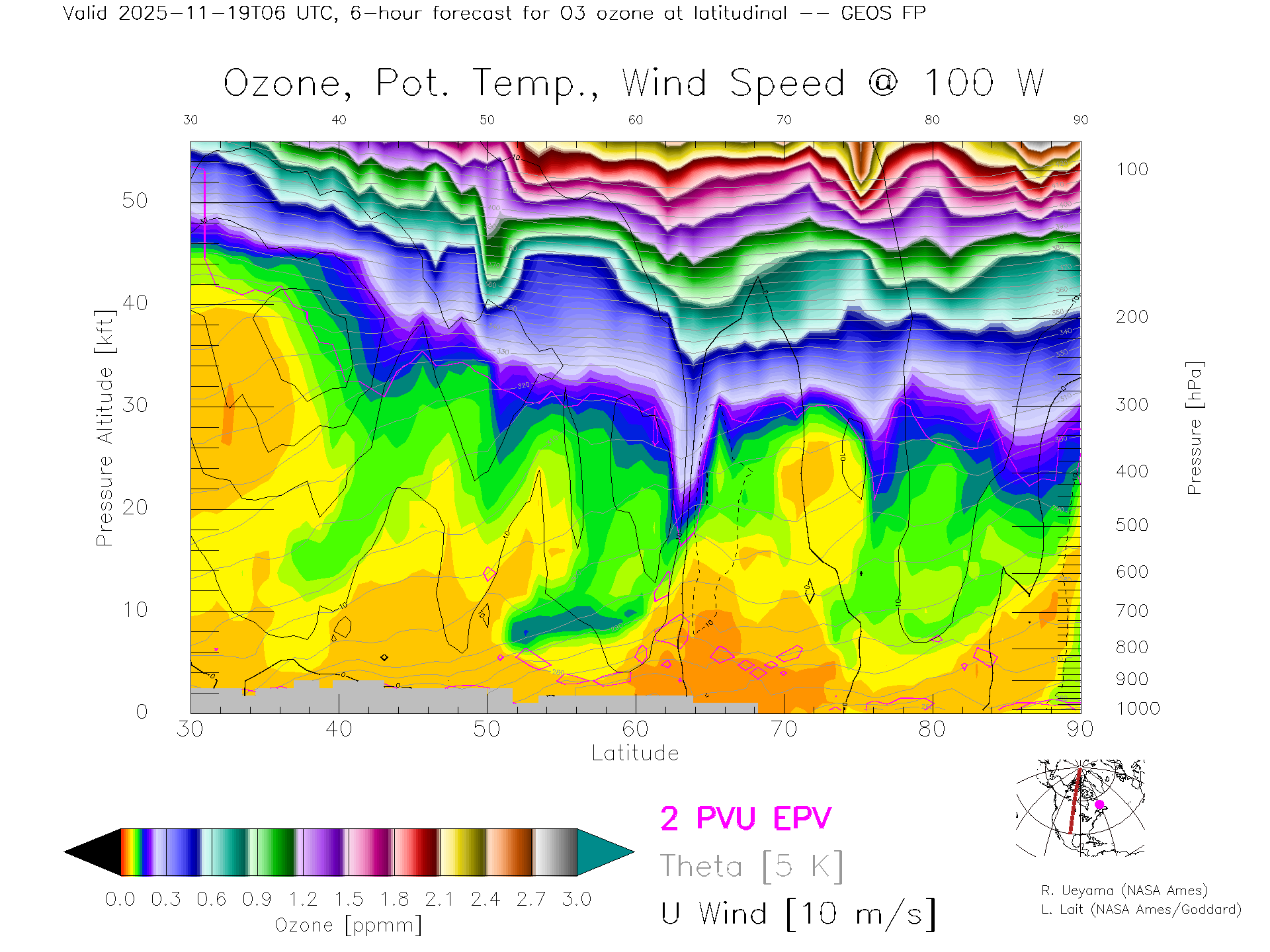 GEOS Forecast Ozone X-Section (100 W)
