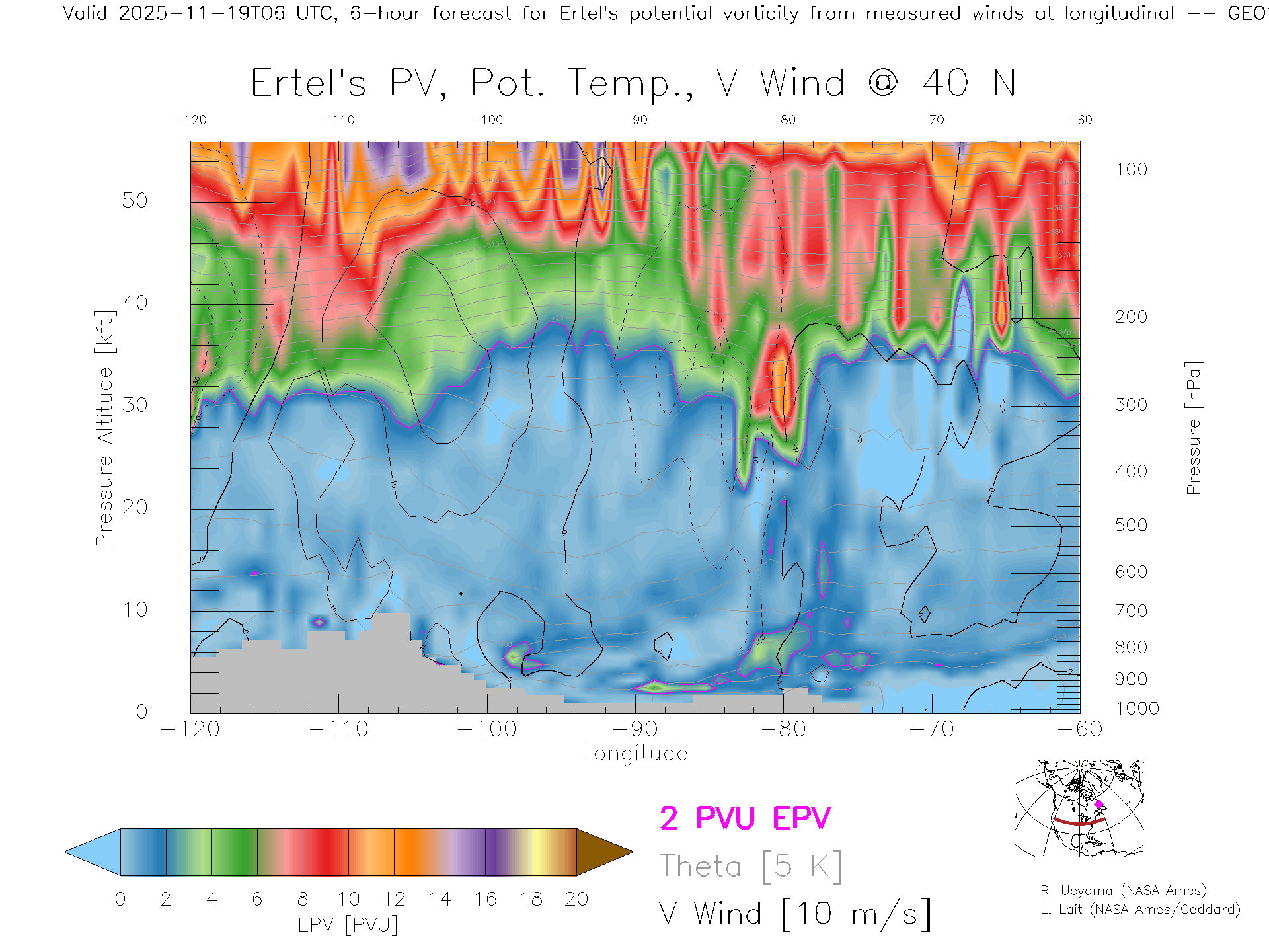 GEOS Forecast PV X-Section (40 N)