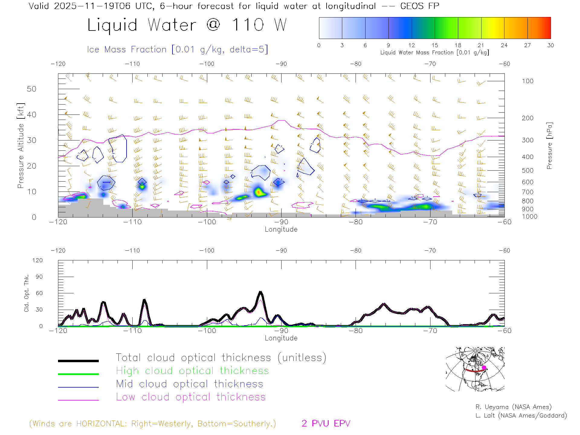 GEOS Forecast Cloud Water Content X-Section (50 N)